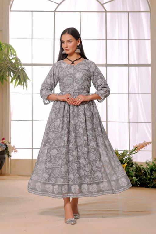 â?¨ Elevate your elegance with this exquisite Light Grey Chiffon Maxi! ð??¸ Designed to exude grace, it features a delicately embroidered V-neckline and a beautifully adorned bordered hemline for a refined touch. ð??? The lightweight chiffon fabric drapes effortlessly, making it perfect for any special occasion. ð??« A true blend of sophistication and charm! ð???