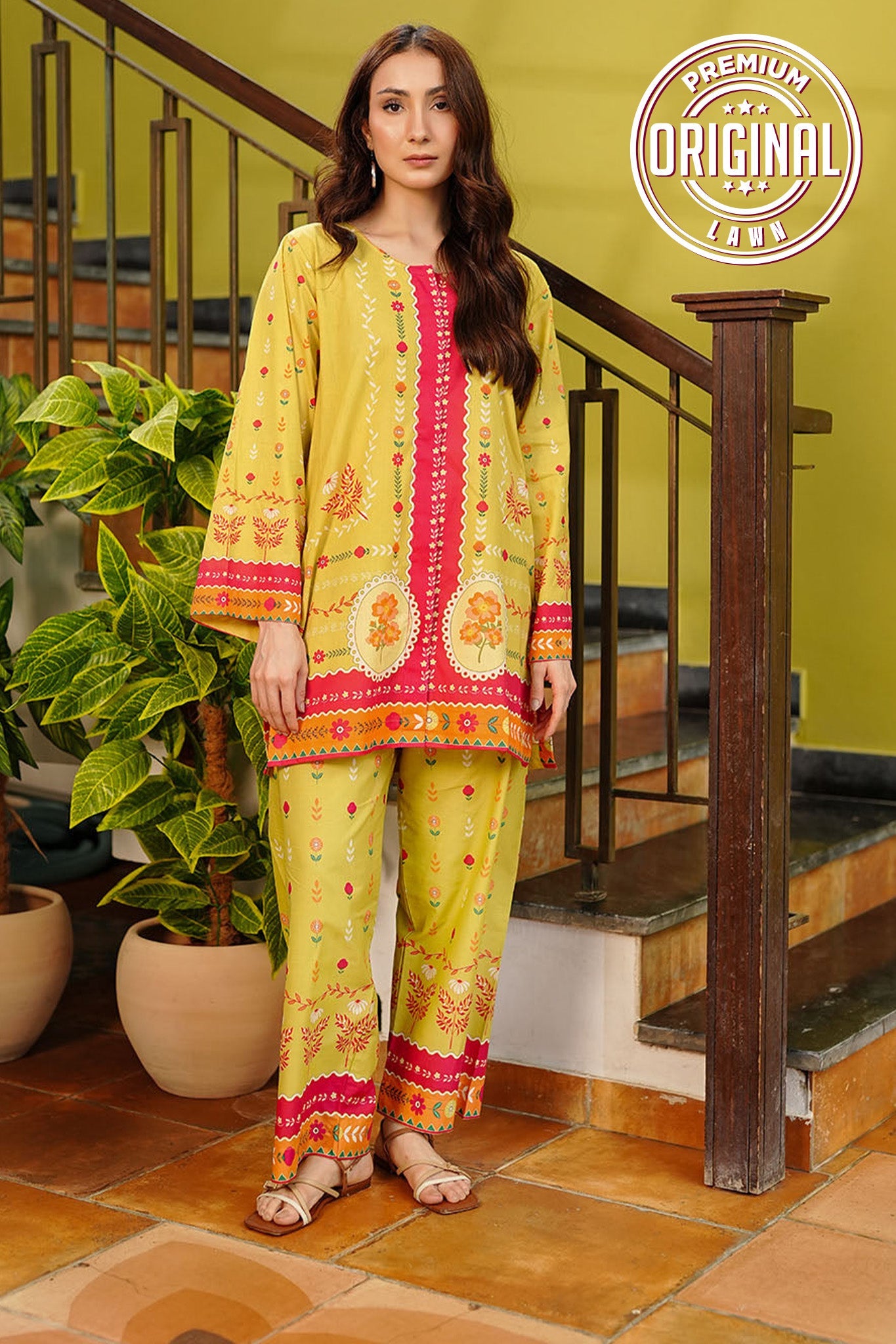 Fresh, vibrant, and full of charm — Lime Radiance is a playful co-ord set that captures the spirit of summer. Set against a soft lime green base, the design features delicately scattered floral motifs and detailed borders in bright pink, orange, and tangerine. The shirt’s straight silhouette is balanced with artful symmetry and playful floral patterns, while the wide-leg trousers echo the same vibrant story. Crafted from airy lawn, this look brings together flair and everyday comfort — a perfect pick for sunny days and easy elegance.