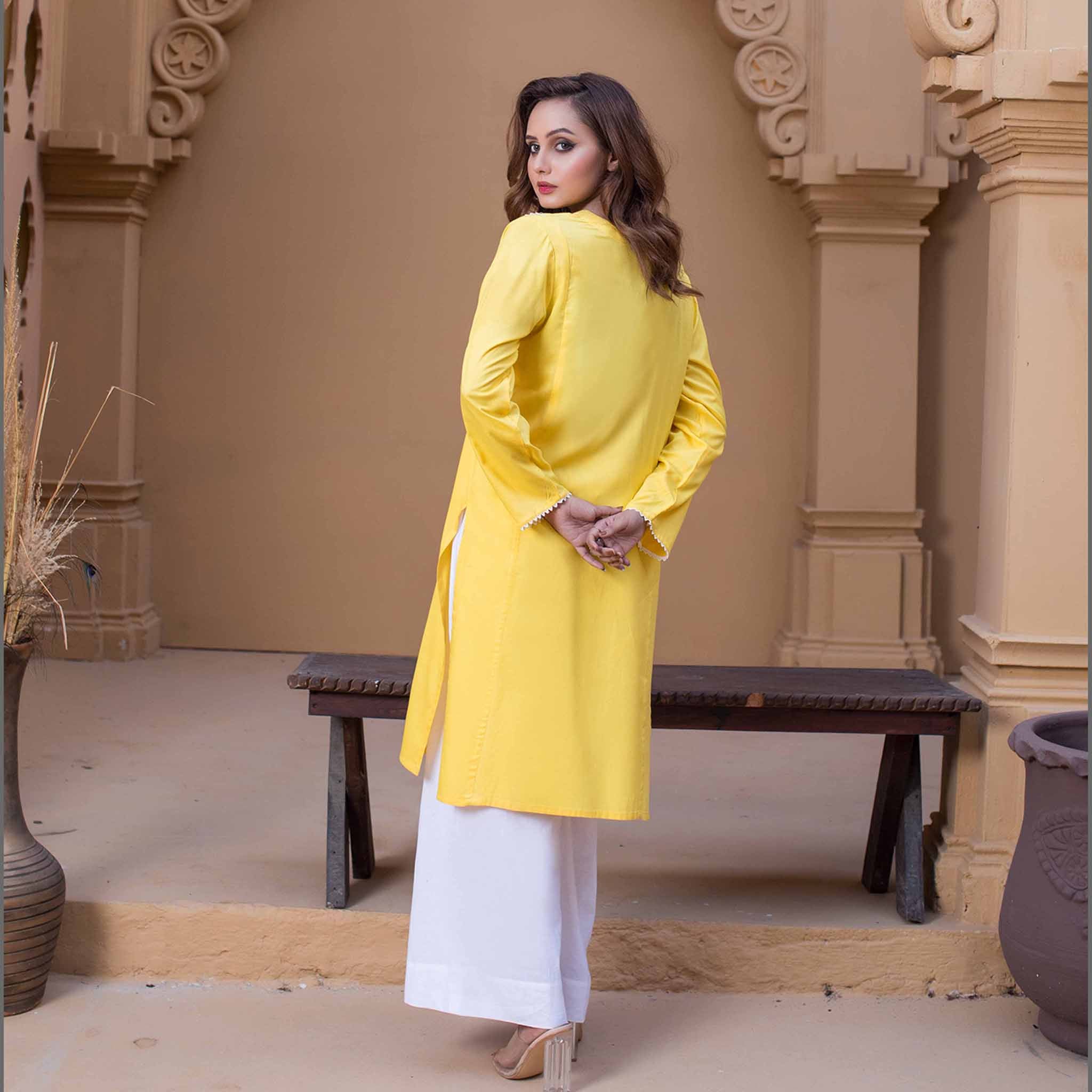 This classic everyday shirt features a laced design with tassels on the neck to complete the look. Its timeless style makes it a versatile addition to any wardrobe.