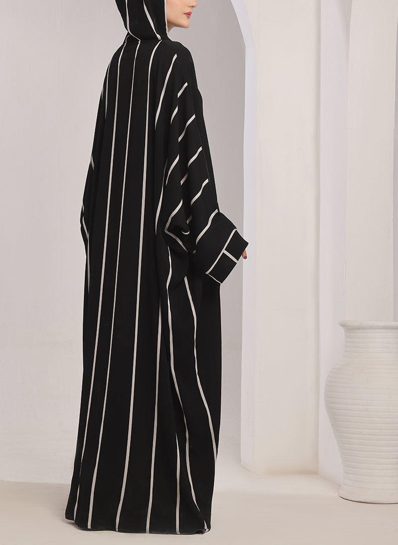 Cover yourself in style and modesty with our White Stripe Hooded Jilbab. This jilbab features a classic design with a modern twist of white stripes, perfect for any occasion. Stay comfortable and chic while maintaining your modesty.