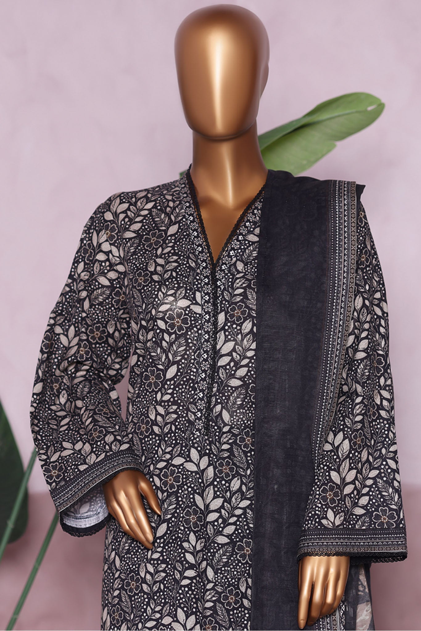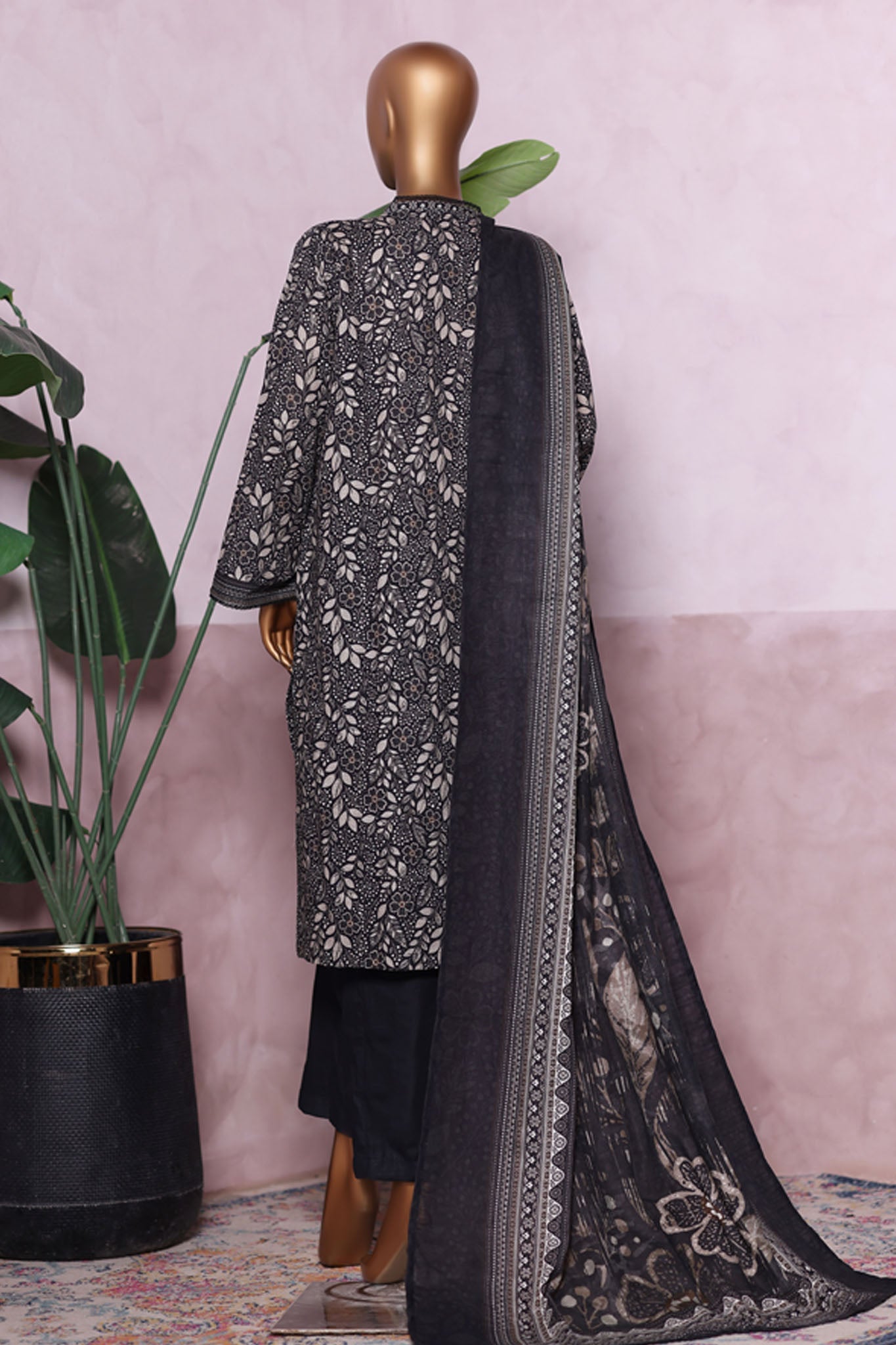 Bin Saeed Stitched 3 Piece Exclusive Printed Khaddar Vol-06 Collection'2025-WK-2453-Black