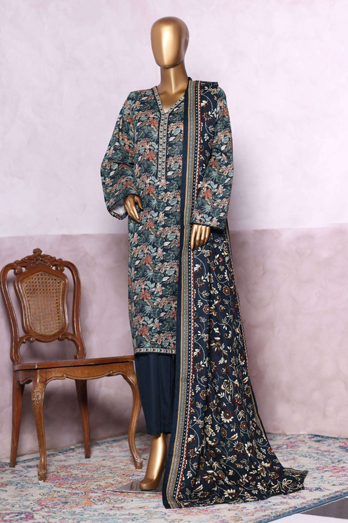 Bin Saeed Stitched 3 Piece Exclusive Printed Khaddar Vol-06 Collection'2025-WK-2460-Green