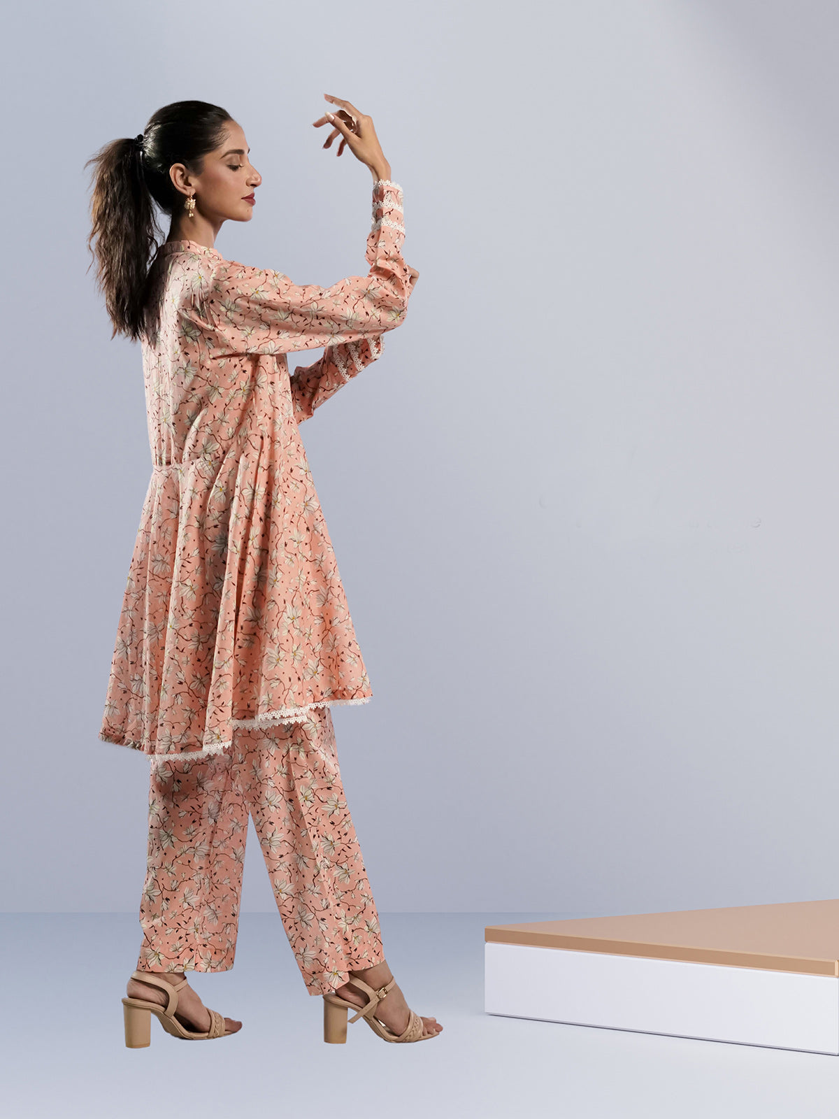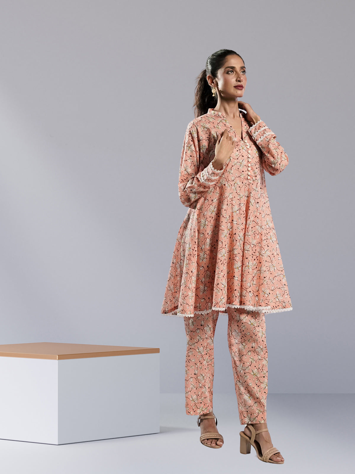 This elegant pink flowing dress is crafted from high-quality cambric fabric, featuring a stunning print design. Perfect for various occasions such as weddings, parties, or formal events, its graceful silhouette adds sophistication and charm to any look. The breathable cambric ensures comfort while providing a flattering fit. Whether paired with heels or flats, this dress can be accessorized to create the perfect ensemble for any event.