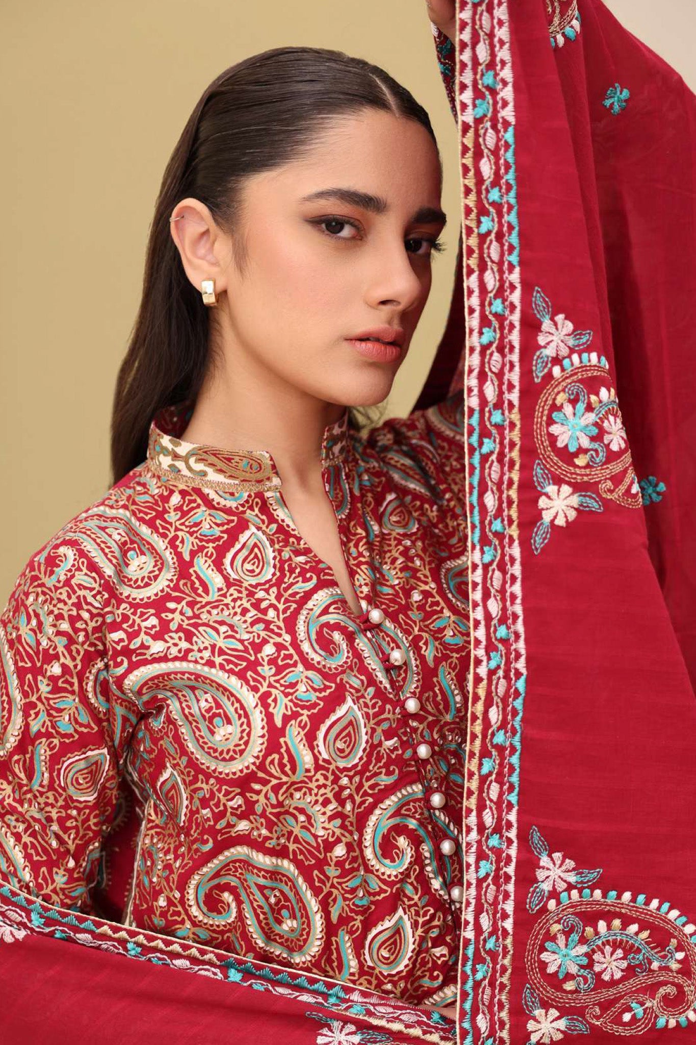 PASTE PRINT LAWN SHIRT DYED EMBROIDERED DORIA DUPATTA DYED CAMBRIC TROUSER