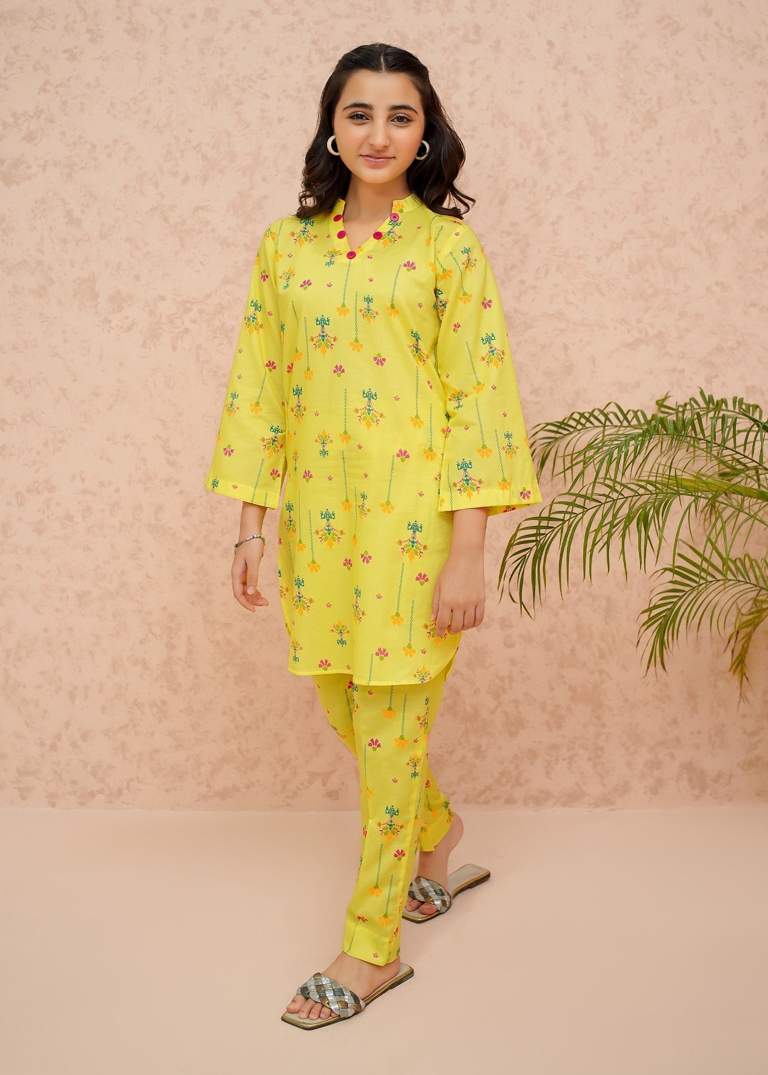 This charming Yellow Lily lawn two-piece suit is perfect for young girls aged 7 to 18 who want to shine at any party. Crafted from soft, breathable lawn fabric, it offers comfort alongside its vibrant yellow hue that brightens any occasion. The set includes a beautifully designed top and matching bottom, making it easy to wear and style. Ideal for festive gatherings or casual celebrations, this dress combines elegance with ease, ensuring your child feels confident and comfortable throughout the day. A delightful addition to any young wardrobe, it celebrates both tradition and youthful charm.
