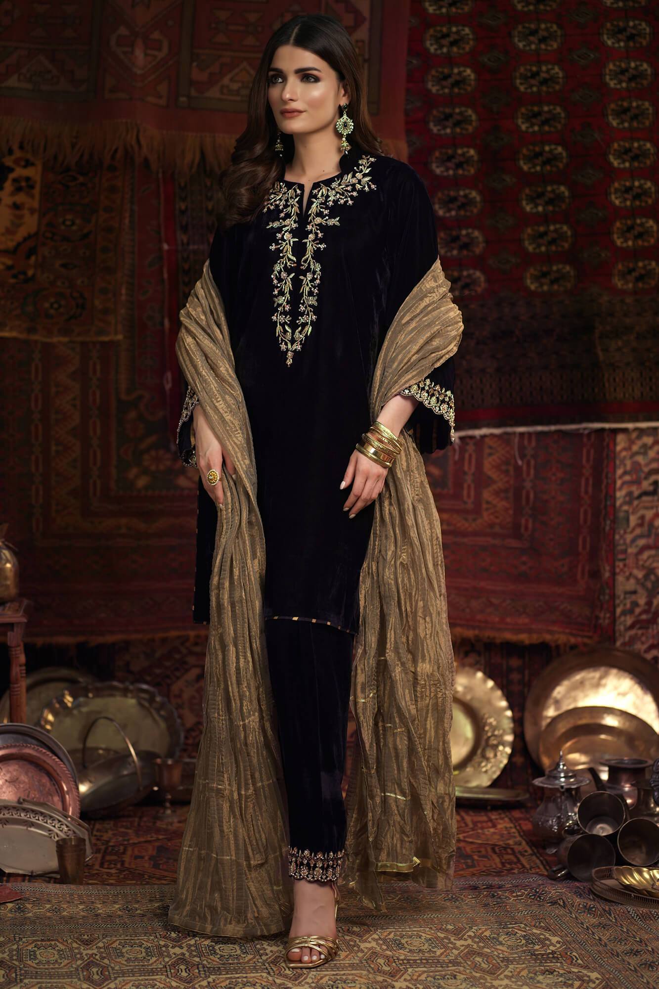 You also have the option of adding Koel Velvet Shalwar as shown in the picture or Black Velvet Pants from our SEPARATES section