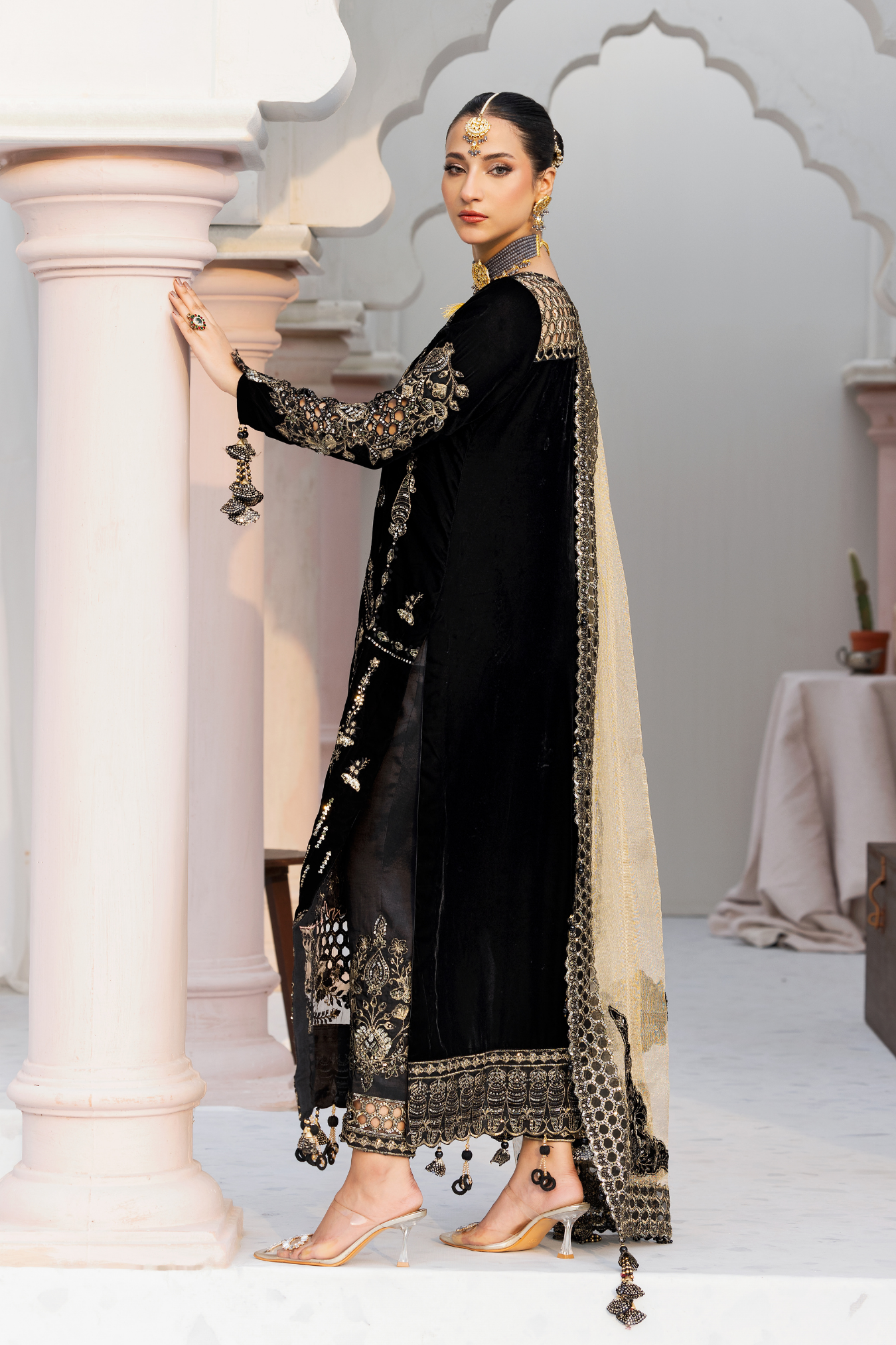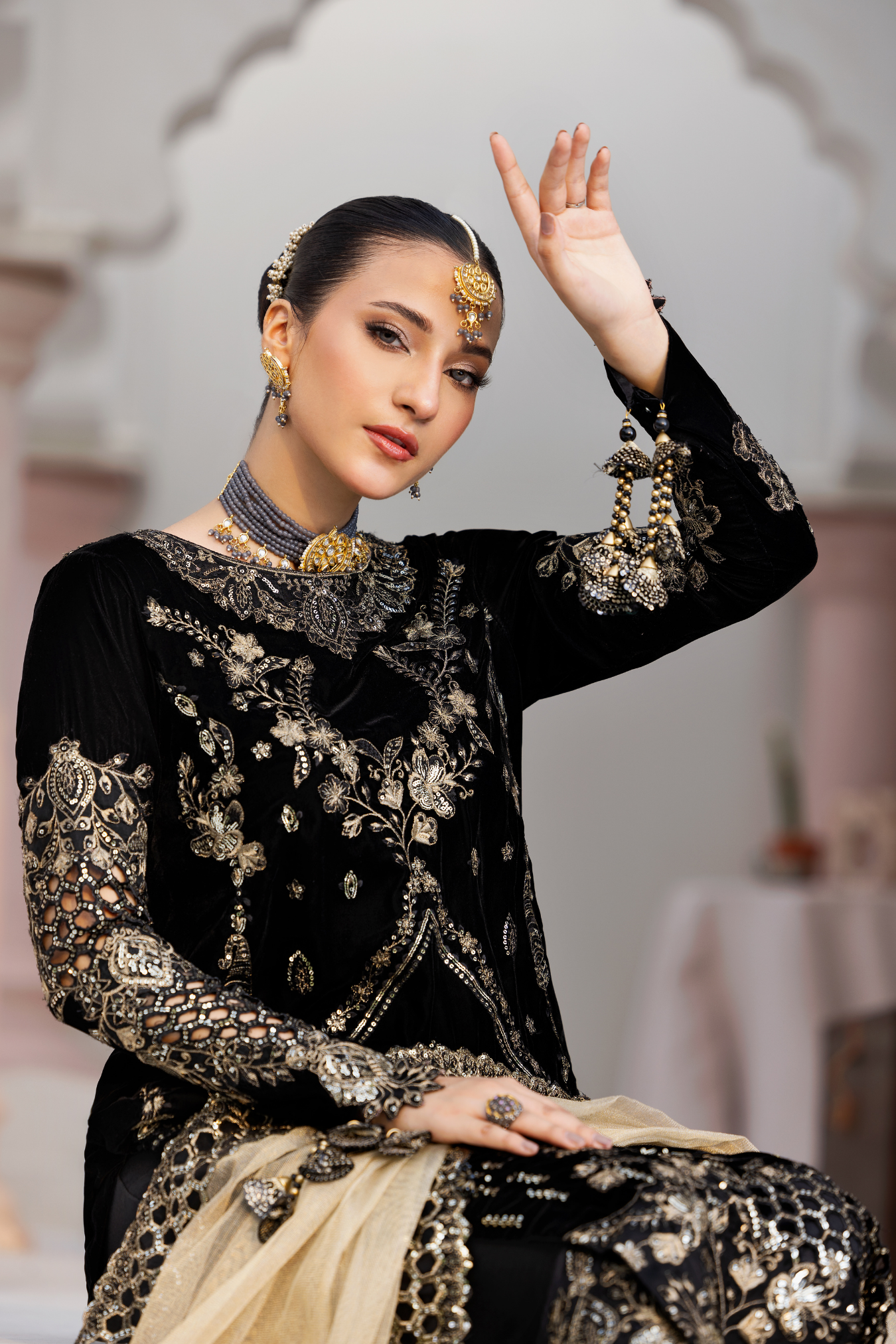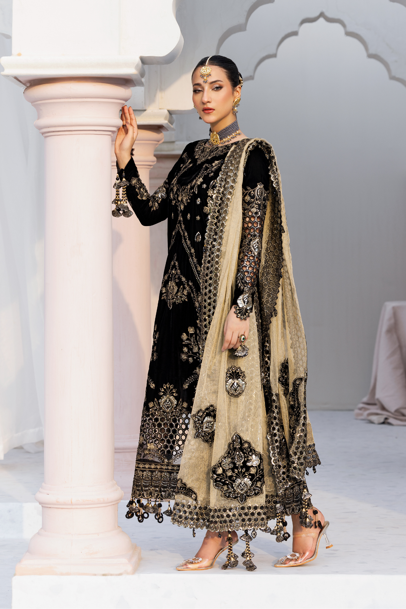 Embroidered micro velvet 9000 front 1 yds Plain micro velvet 9000 back 1 yds Embroidered micro velvet 9000 sleeves 0.67...