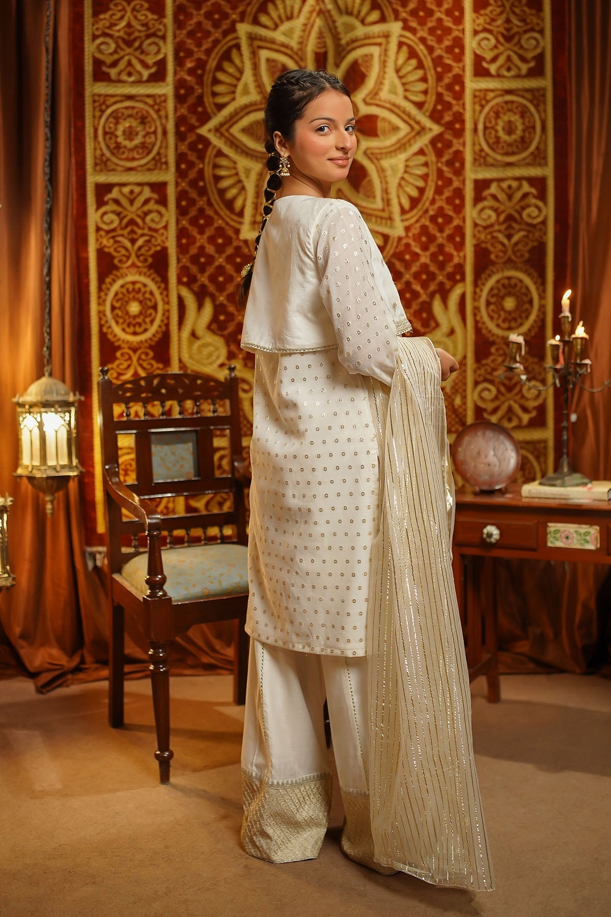 Bottom: Ivory White Cotton Silk Dhaka Pants With Embroidery Patta