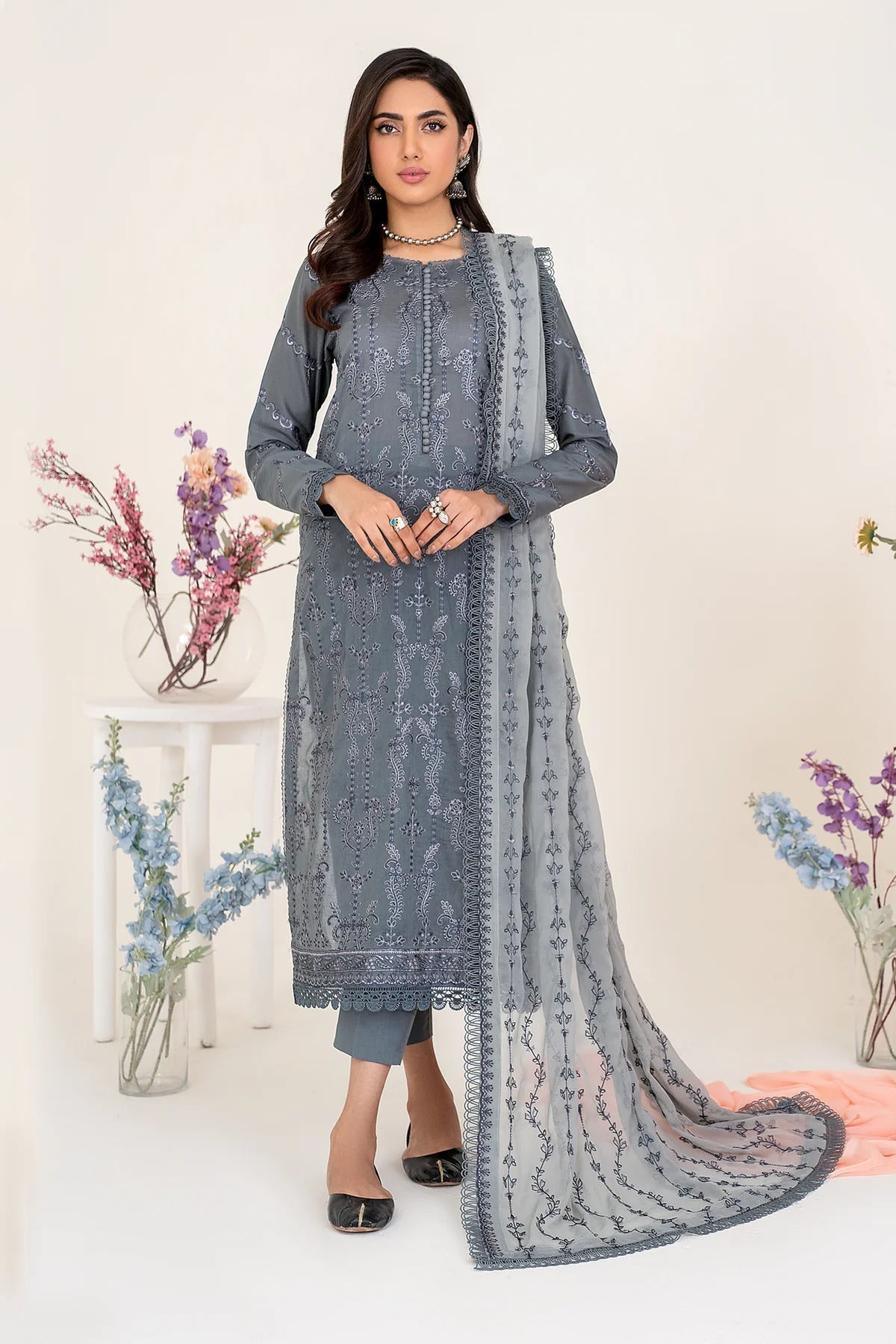 Shirt Front: Embroidered Lawn Shirt Back: Embroidered Lawn Sleeves: Embroidered Lawn Dupatta: Emborided Chiffon Dupatta Front & Back Lace: Embroidered Lawn...