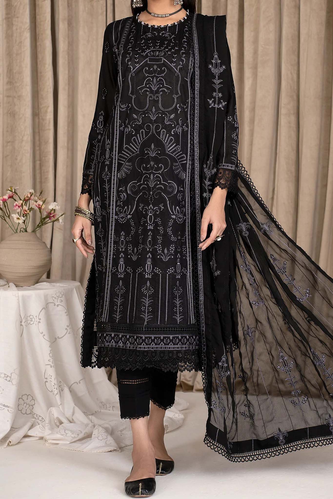 Shirt Front: Embroidered Lawn Shirt Back: Embroidered Lawn Sleeves: Embroidered Lawn Dupatta: Emborided Chiffon Dupatta Front & Back Lace: Embroidered Lawn...
