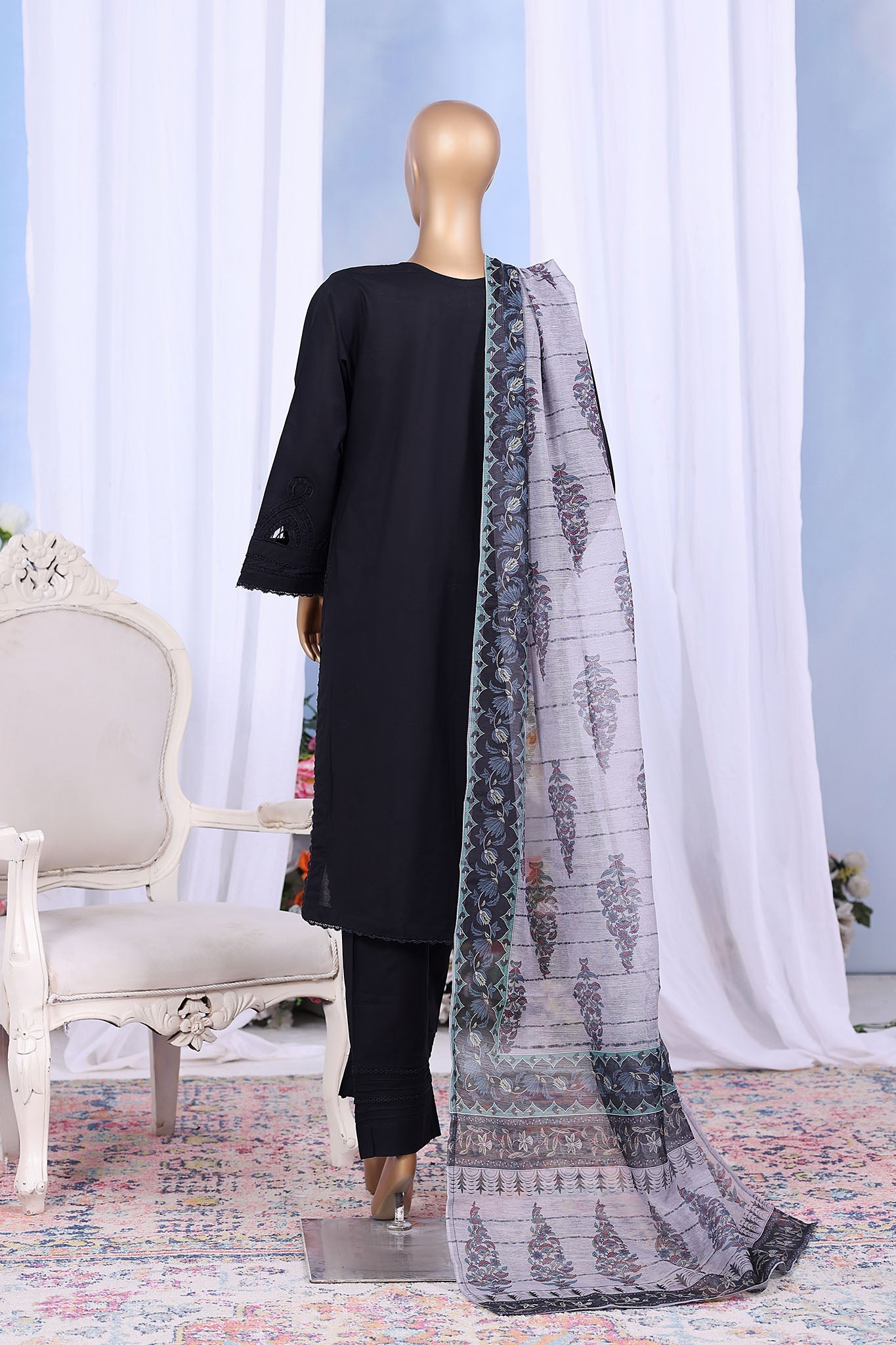 Khombi Stitched 3 Piece Casual Pret Cotton Collection'2025-Zebra Lines Black