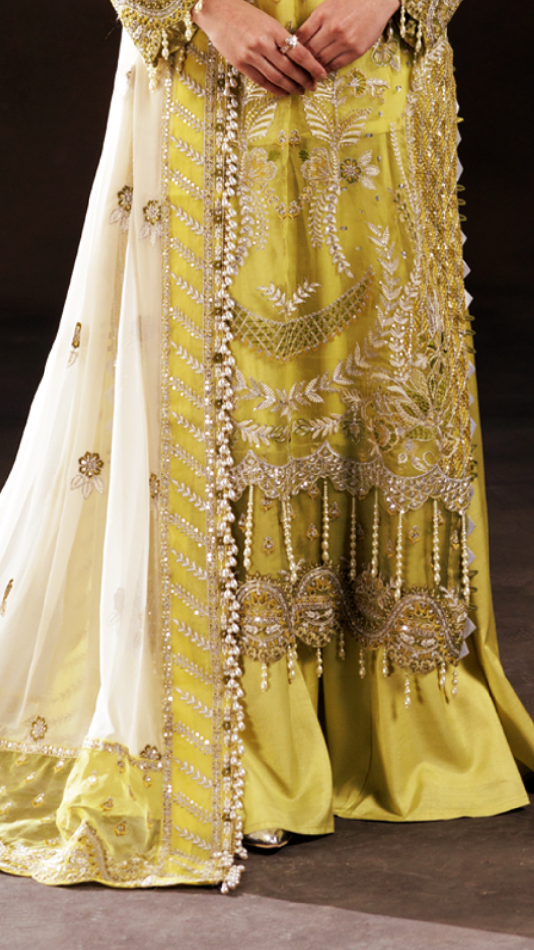 Embroidered organza front with h.m work 1 yds Embroidered organza back 1 yds Embroidered organza sleeves 0.67 yds Embroidered ghera...
