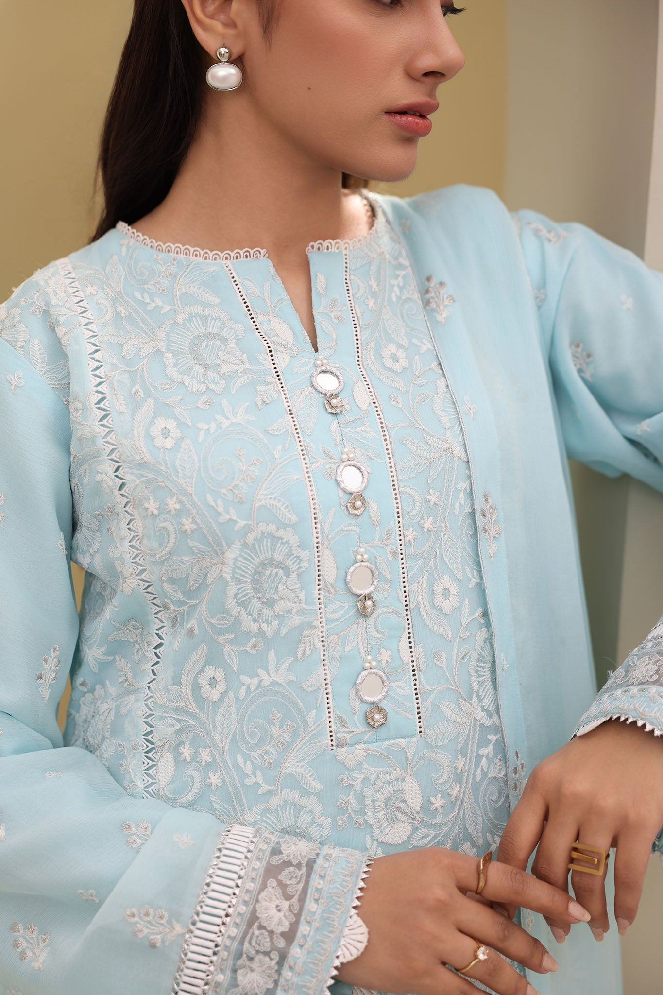DYED EMBROIDERED CHIFFON SHIRTWITH MALAI SILK INNER