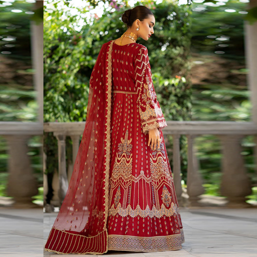 Embroidered net 6 panel for lehnga / maxi 2 yds