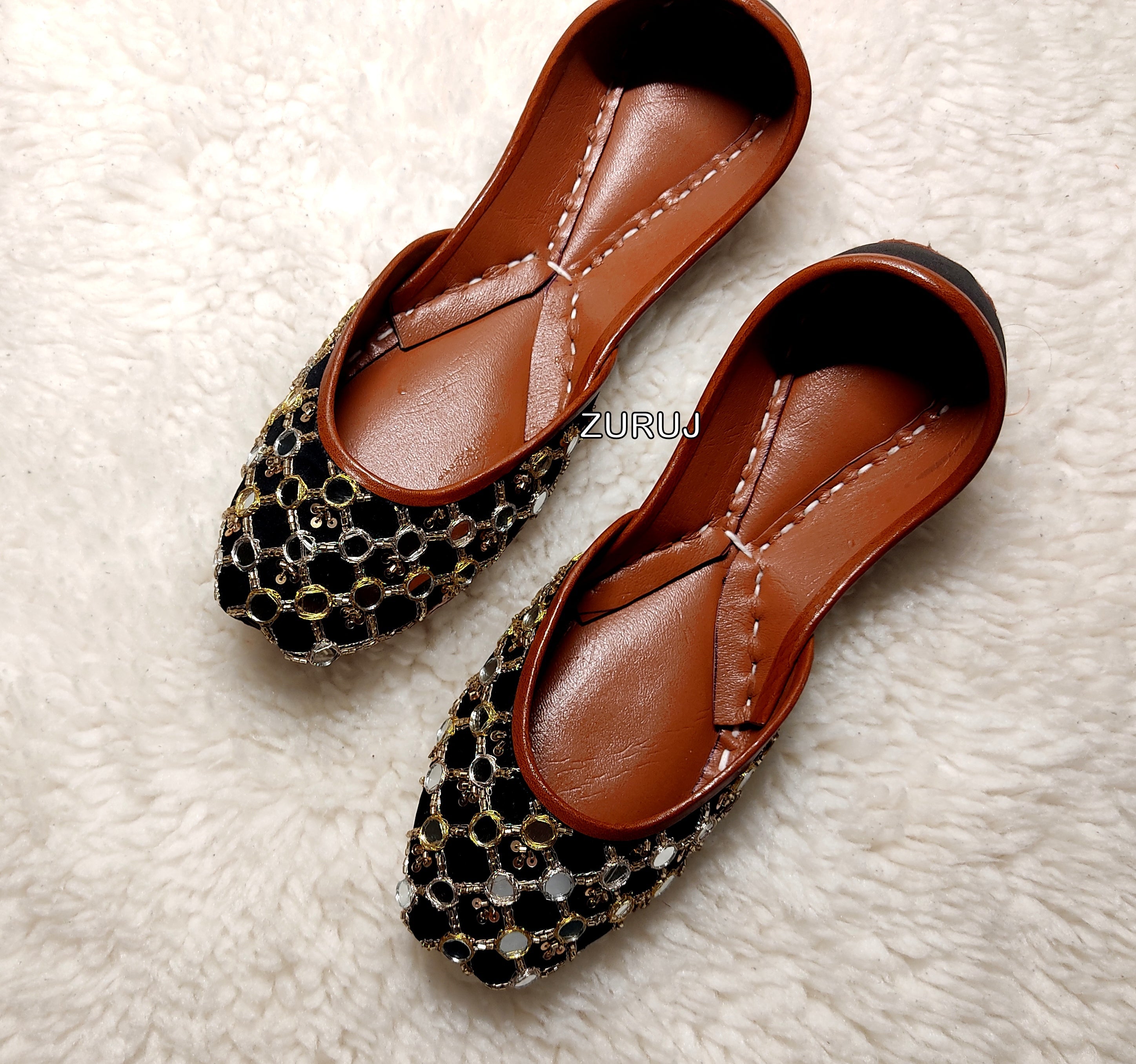 Zun-99 is a quintessential exemplary of pleasant, luxurious and traditional artistry made on black fabric with golden and silver mirror work . These are the adorable heritages of Pakistan that are hand-sewed by determined cordwainers of rural areas to exhibit the utmost beauty of prepossessing feet.