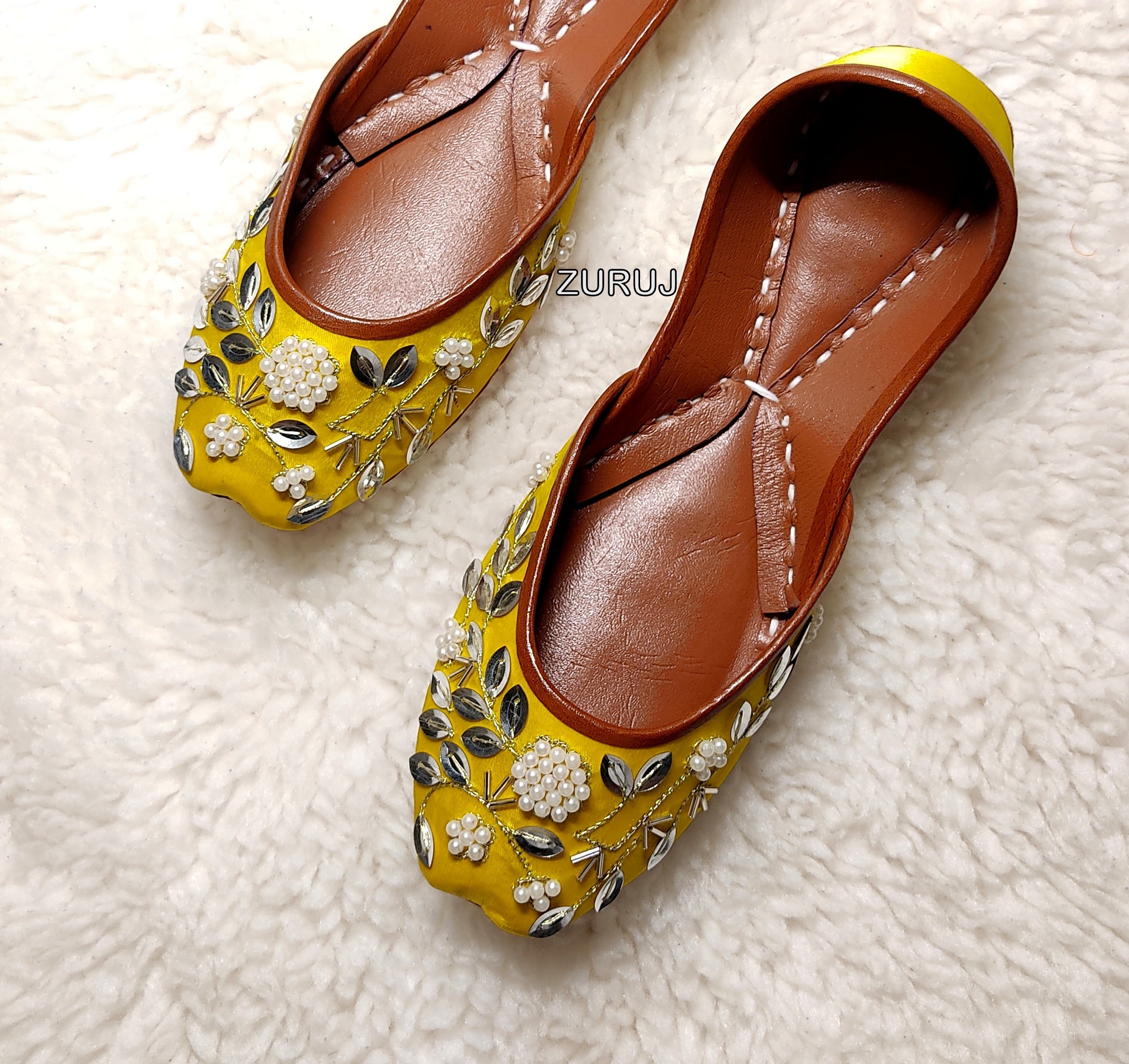 Zun-101 is a quintessential exemplary of pleasant, luxurious and traditional artistry made on yellow base with silver and white work . These are the adorable heritages of Pakistan that are hand-sewed by determined cordwainers of rural areas to exhibit the utmost beauty of prepossessing feet.