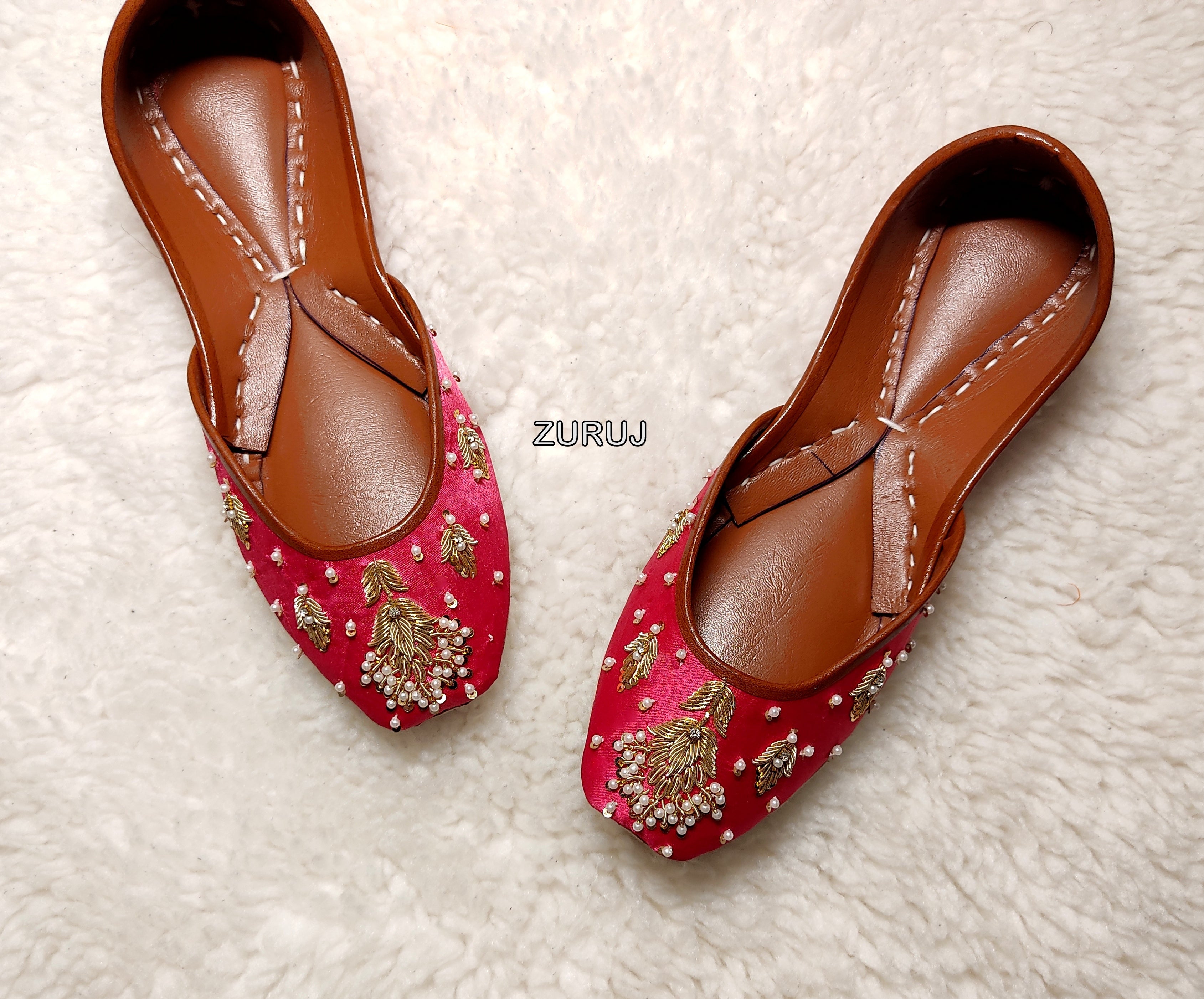 Zun-106 is a quintessential exemplary of pleasant, luxurious and traditional artistry made on pink base with golden dabka and white pearls work . These are the adorable heritages of Pakistan that are hand-sewed by determined cordwainers of rural areas to exhibit the utmost beauty of prepossessing feet.