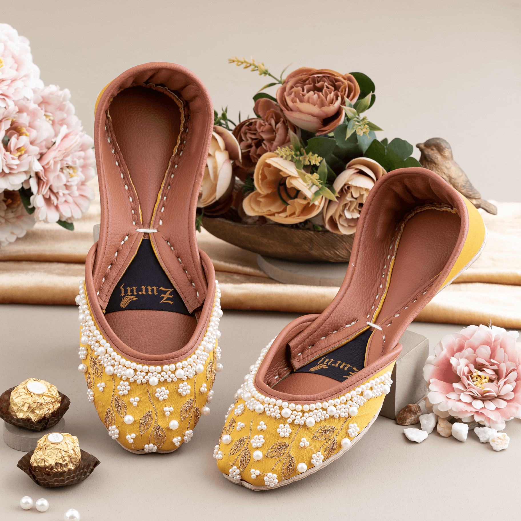 Zun-131-Mustard is a quintessential exemplary of pleasant, luxurious and traditional artistry made on Mustard color base with beautiful handmade work. These are the adorable heritages of Pakistan that are hand-sewed by determined cordwainers of rural areas to exhibit the utmost beauty of prepossessing feet.