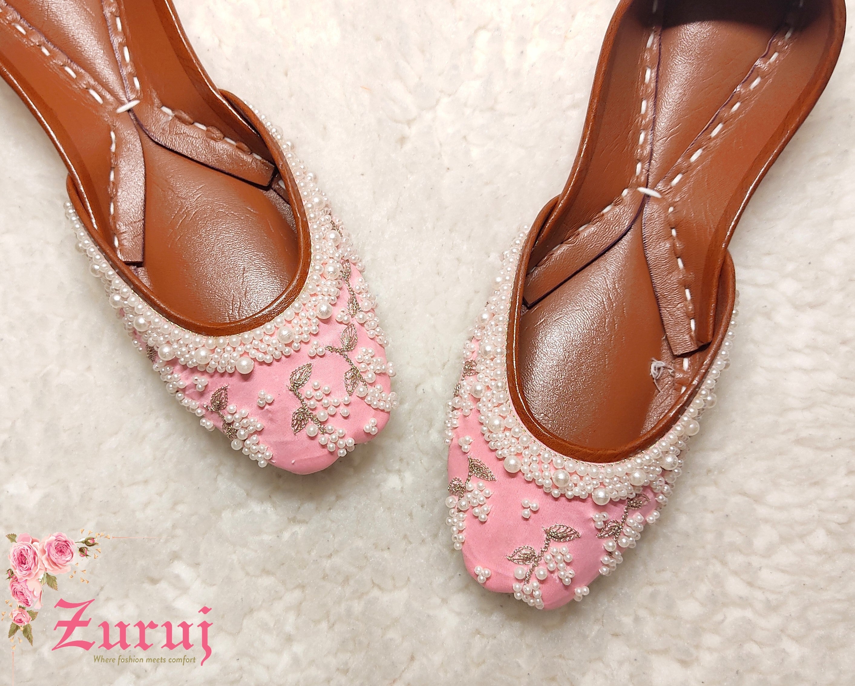Zun-131 is a quintessential exemplary of pleasant, luxurious and traditional artistry made on baby pink base with beautiful combination of white pearls embroidery work. These are the adorable heritages of Pakistan that are hand-sewed by determined cordwainers of rural areas to exhibit the utmost beauty of prepossessing feet.