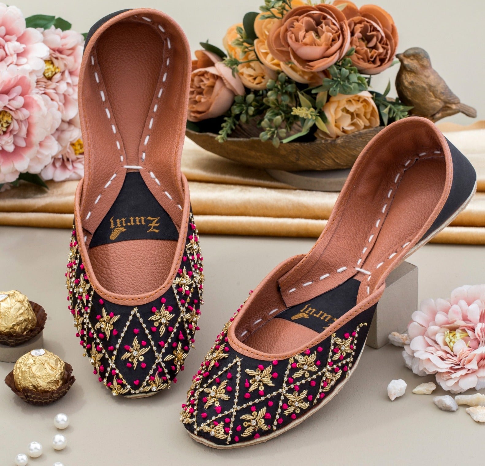 Zun-146-Black is a quintessential exemplary of pleasant, luxurious and traditional artistry made on Black base with beautiful embroidery work. These are the adorable heritages of Pakistan that are hand-sewed by determined cordwainers of rural areas to exhibit the utmost beauty of prepossessing feet.