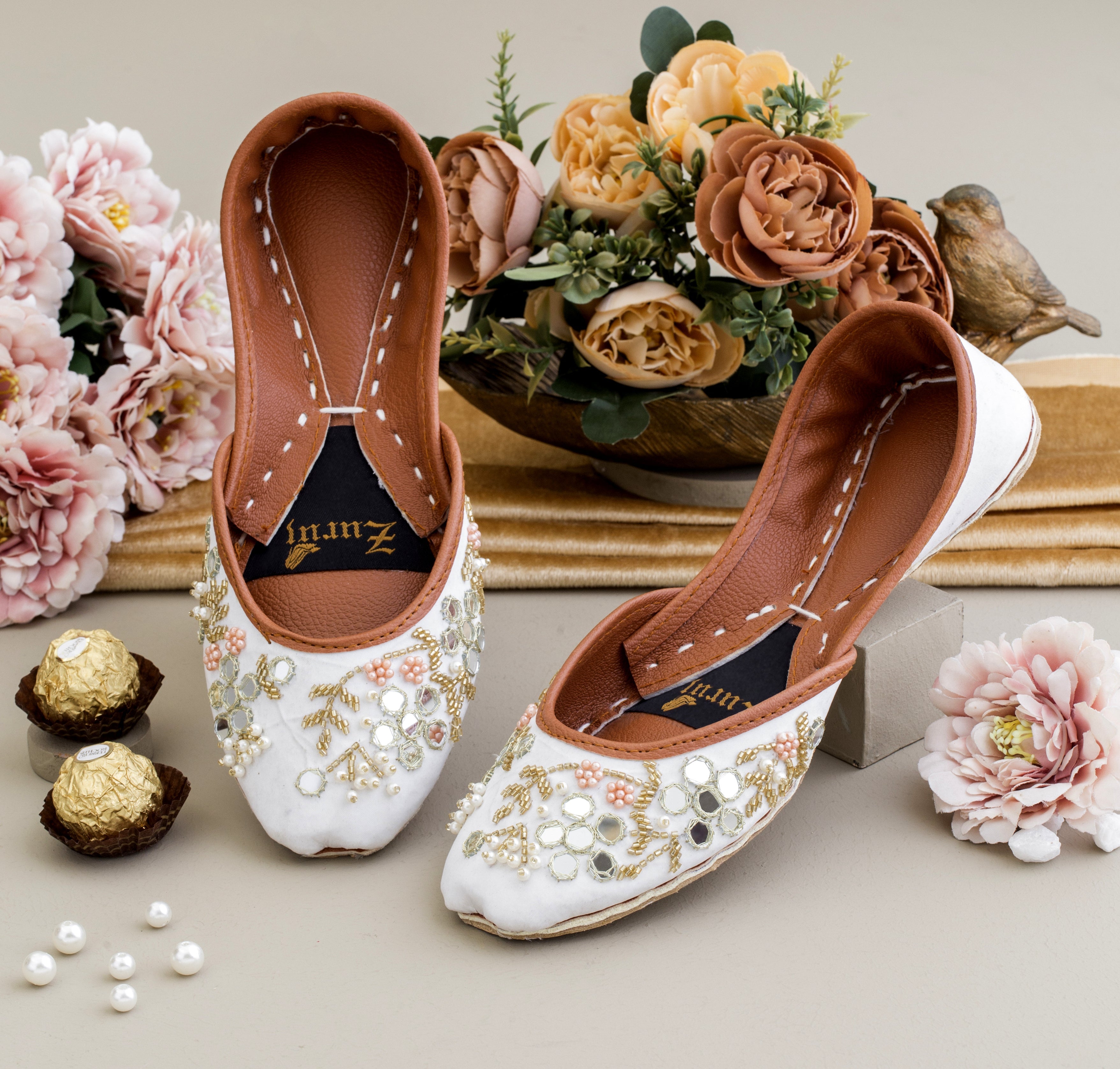 Zun-165-White is a quintessential exemplary of pleasant, luxurious and traditional artistry made on White base with beautiful embroidery work. These are the adorable heritages of Pakistan that are hand-sewed by determined cordwainers of rural areas to exhibit the utmost beauty of prepossessing feet.