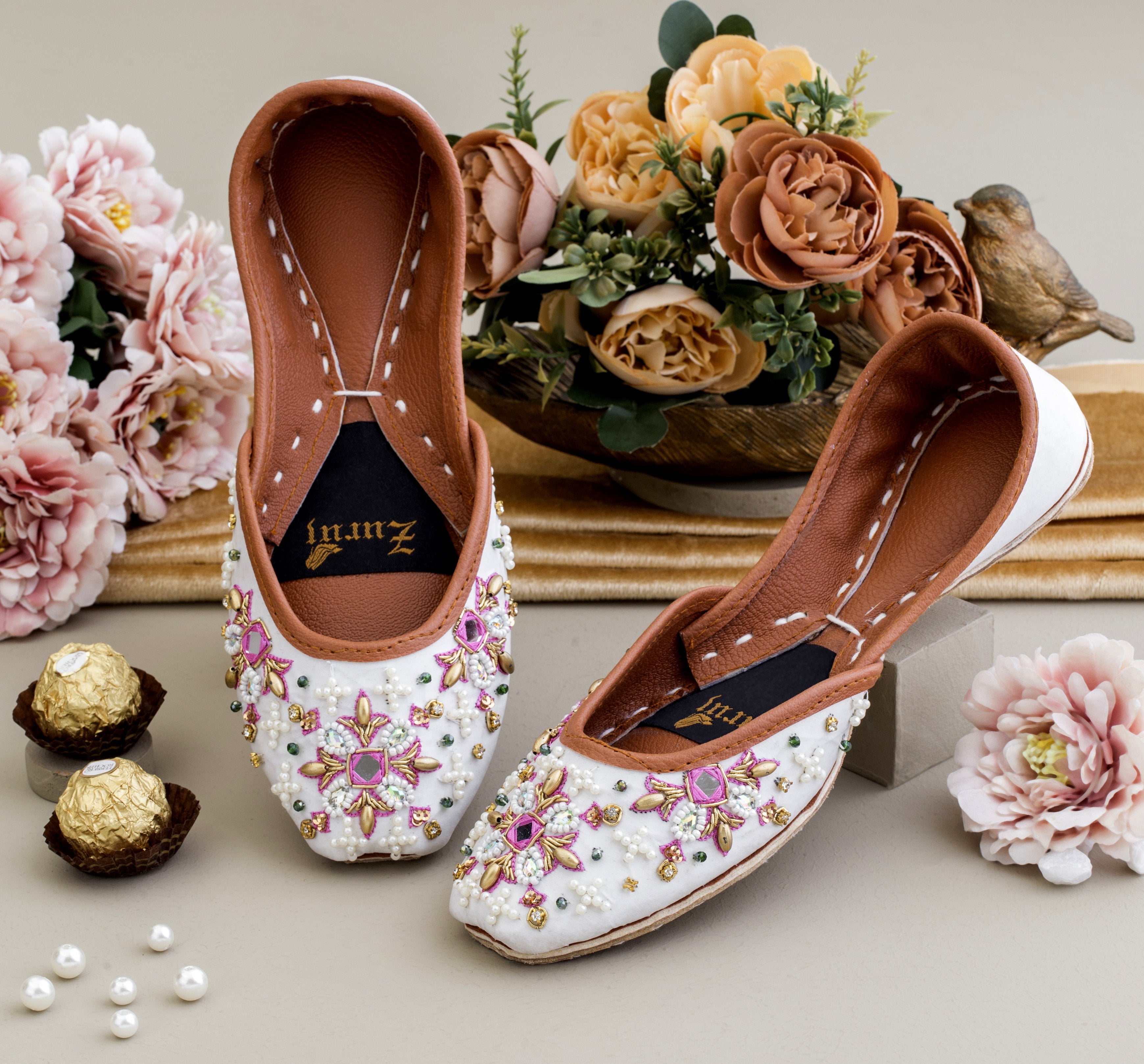 Zun-187-White is a quintessential exemplary of pleasant, luxurious and traditional artistry made on White base with beautiful embroidery work. These are the adorable heritages of Pakistan that are hand-sewed by determined cordwainers of rural areas to exhibit the utmost beauty of prepossessing feet.