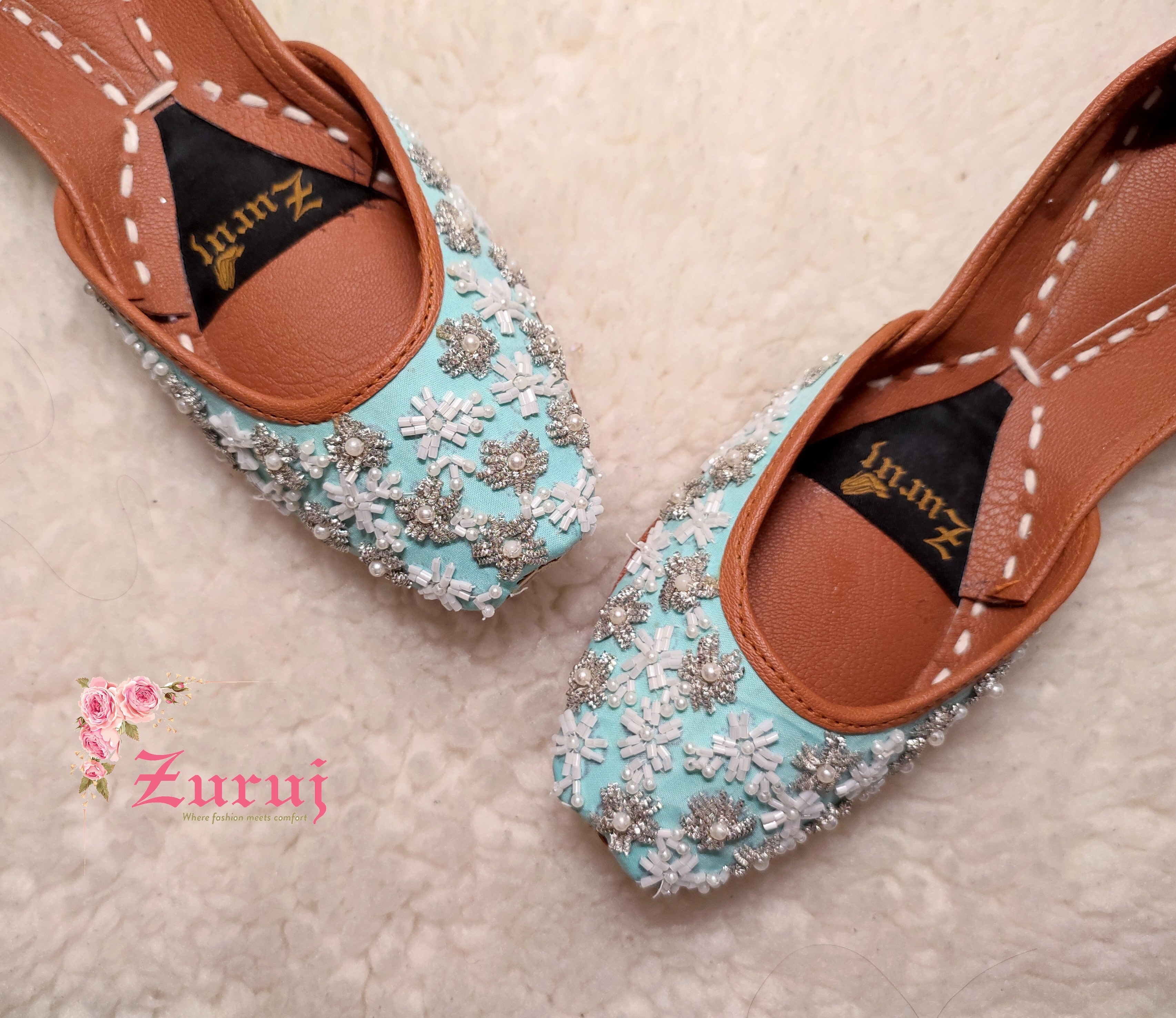 zun-202-SkyBlue is a quintessential exemplary of pleasant, luxurious and traditional artistry made on Sky Blue color base with beautiful handmade work. These are the adorable heritages of Pakistan that are hand-sewed by determined cordwainers of rural areas to exhibit the utmost beauty of prepossessing feet.