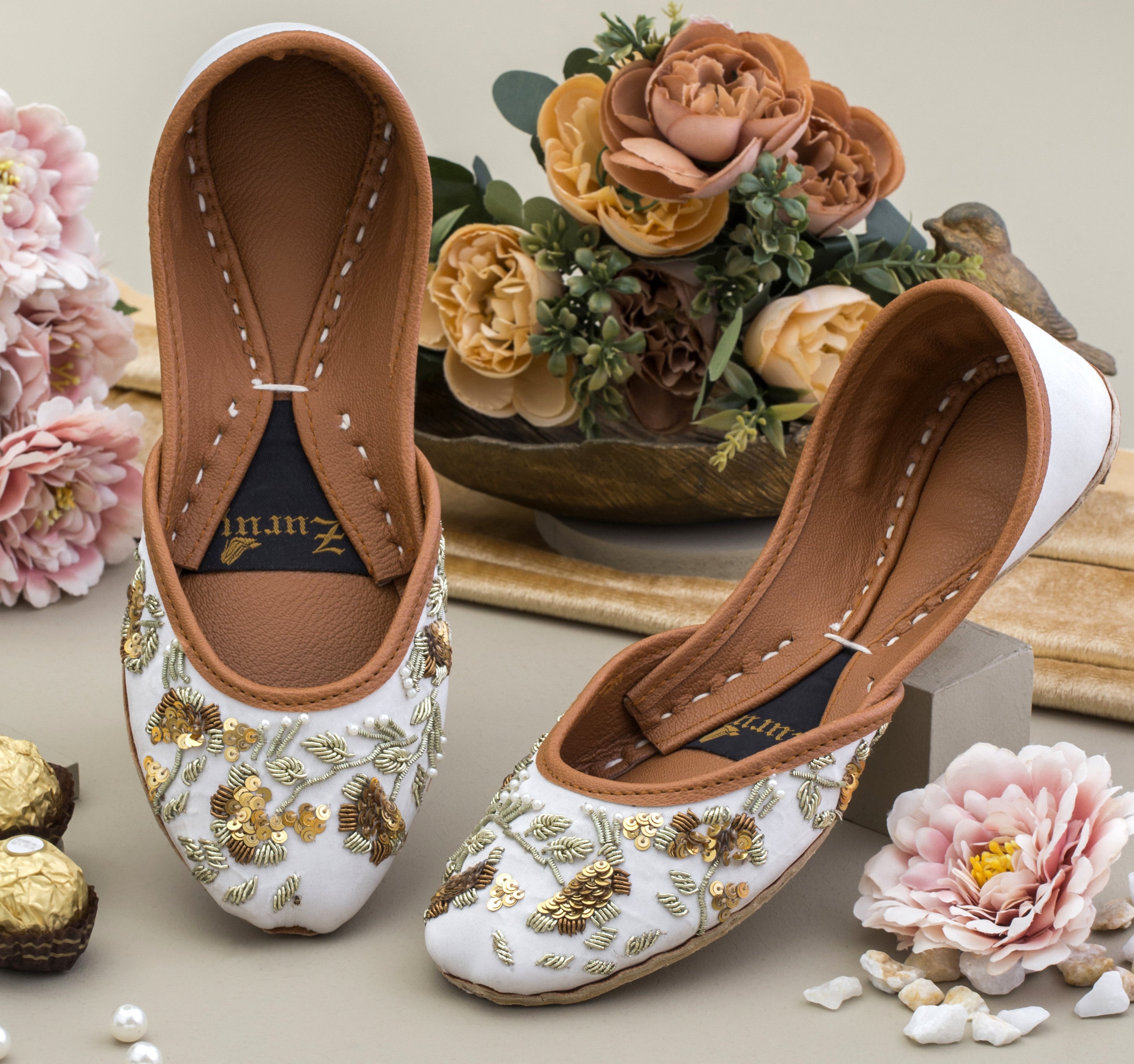 Zun-223-White is a quintessential exemplary of pleasant, luxurious and traditional artistry made on White color base with beautiful handmade work. These are the adorable heritages of Pakistan that are hand-sewed by determined cordwainers of rural areas to exhibit the utmost beauty of prepossessing feet.