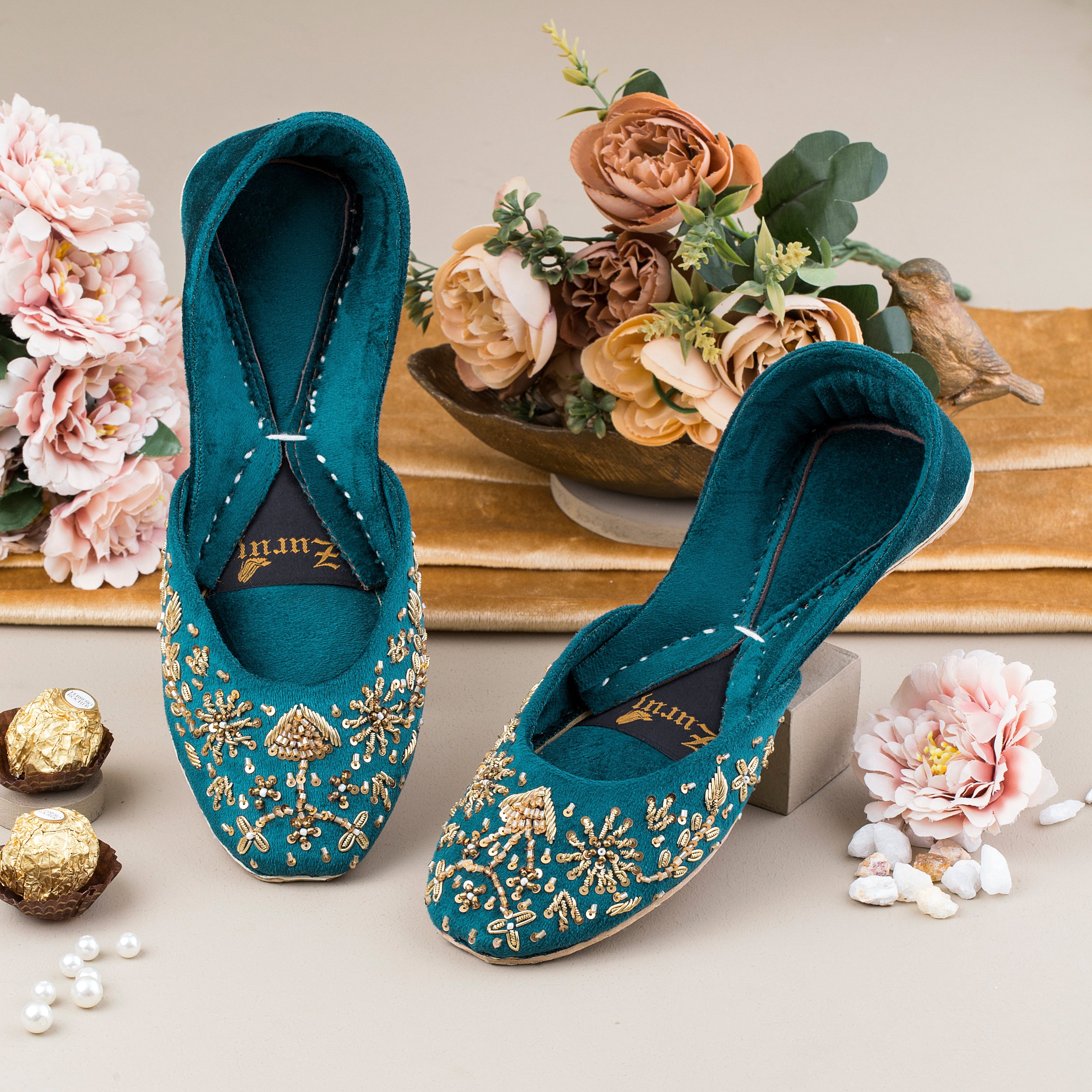 Zun-238-PEACOCK is a quintessential exemplary of pleasant, luxurious and traditional artistry made on PEACOCK color base with beautiful handmade work. These are the adorable heritages of Pakistan that are hand-sewed by determined cordwainers of rural areas to exhibit the utmost beauty of prepossessing feet.