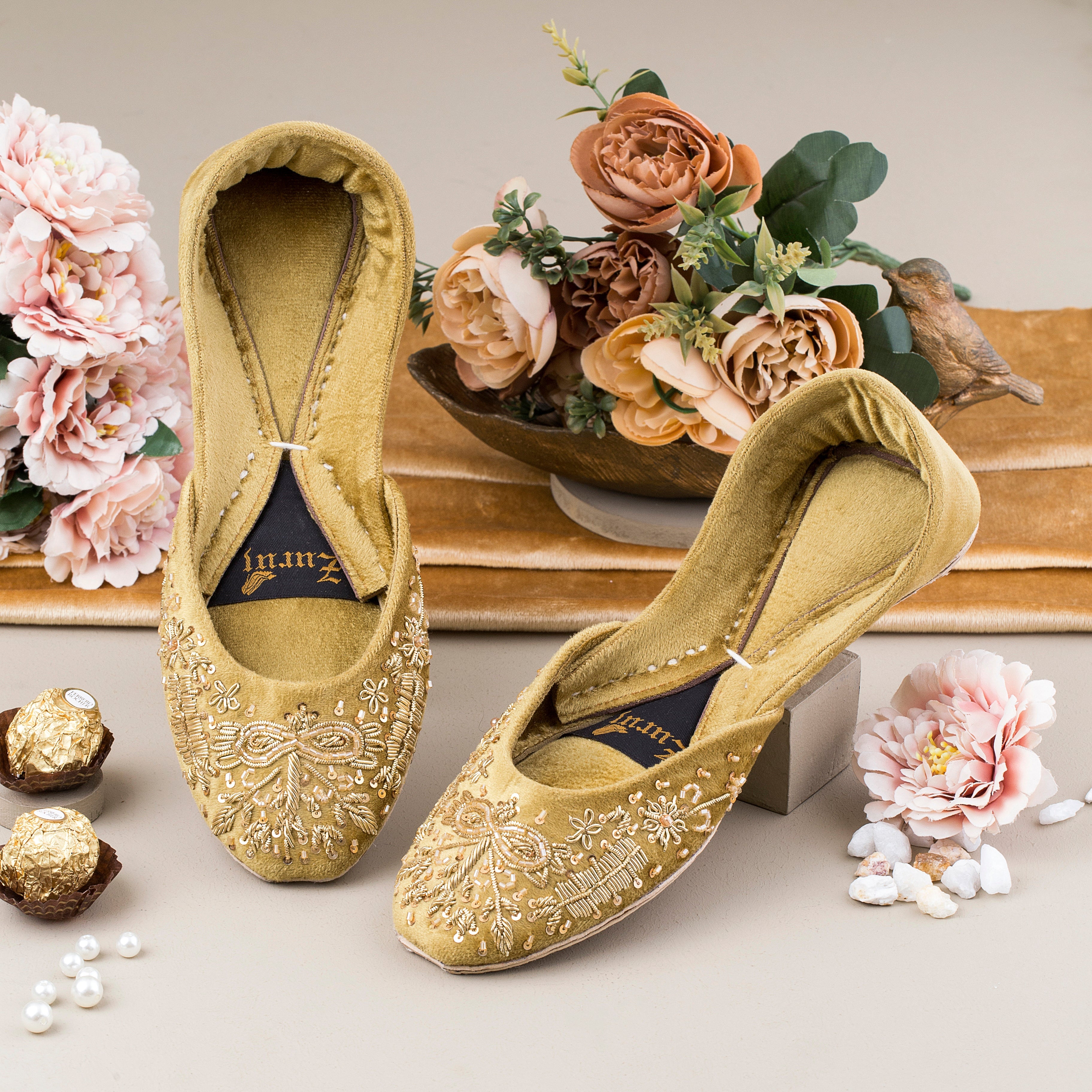 Zun-239-GOLD is a quintessential exemplary of pleasant, luxurious and traditional artistry made on GOLD color base with beautiful handmade work. These are the adorable heritages of Pakistan that are hand-sewed by determined cordwainers of rural areas to exhibit the utmost beauty of prepossessing feet.