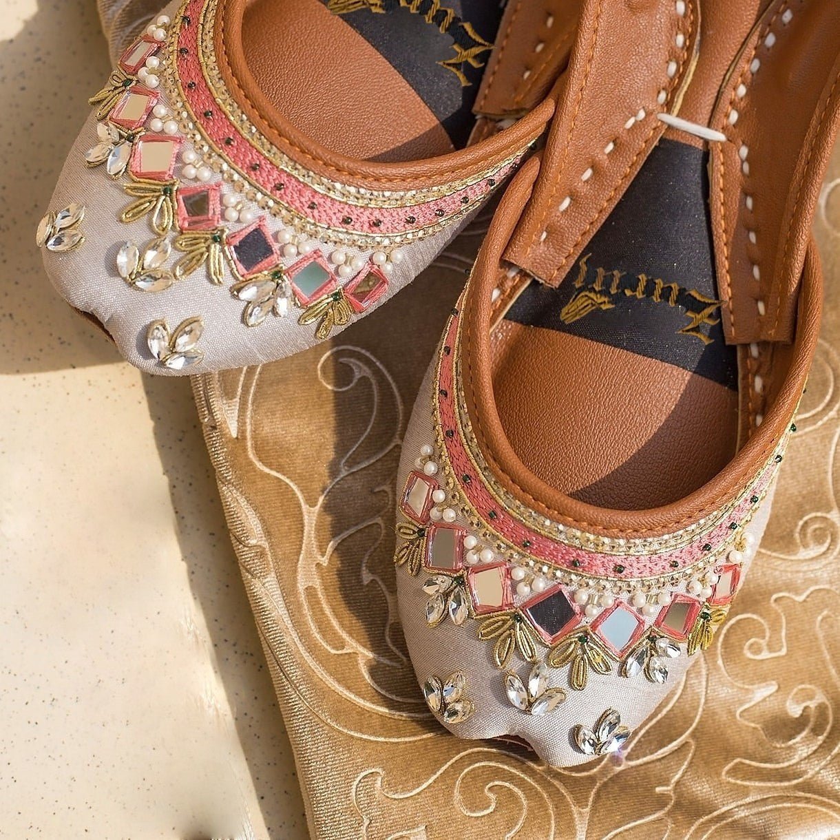 Zun-25 is a quintessential exemplary of pleasant, luxurious and traditional artistry made on grey silver base. These are the adorable heritages of Pakistan that are hand-sewed by determined cordwainers of rural areas to exhibit the utmost beauty of prepossessing feet.