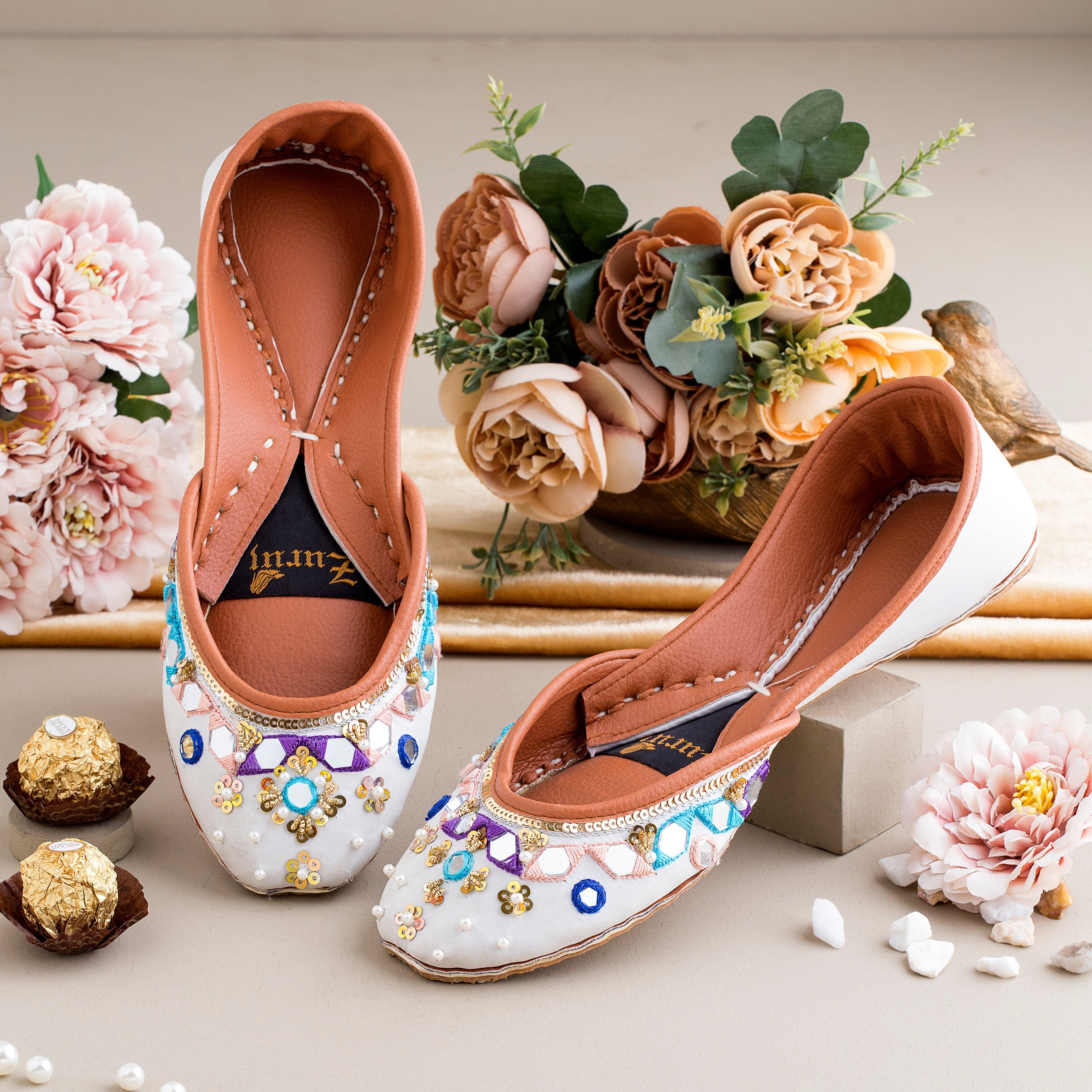 Zun-250-WHITE is a quintessential exemplary of pleasant, luxurious and traditional artistry made on WHITE color base with beautiful handmade work. These are the adorable heritages of Pakistan that are hand-sewed by determined cordwainers of rural areas to exhibit the utmost beauty of prepossessing feet.