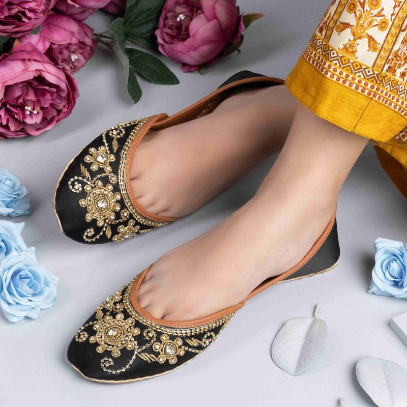 zun-261-Black is a quintessential exemplary of pleasant, luxurious and traditional artistry made on Black color base with beautiful handmade work. These are the adorable heritages of Pakistan that are hand-sewed by determined cordwainers of rural areas to exhibit the utmost beauty of prepossessing feet.