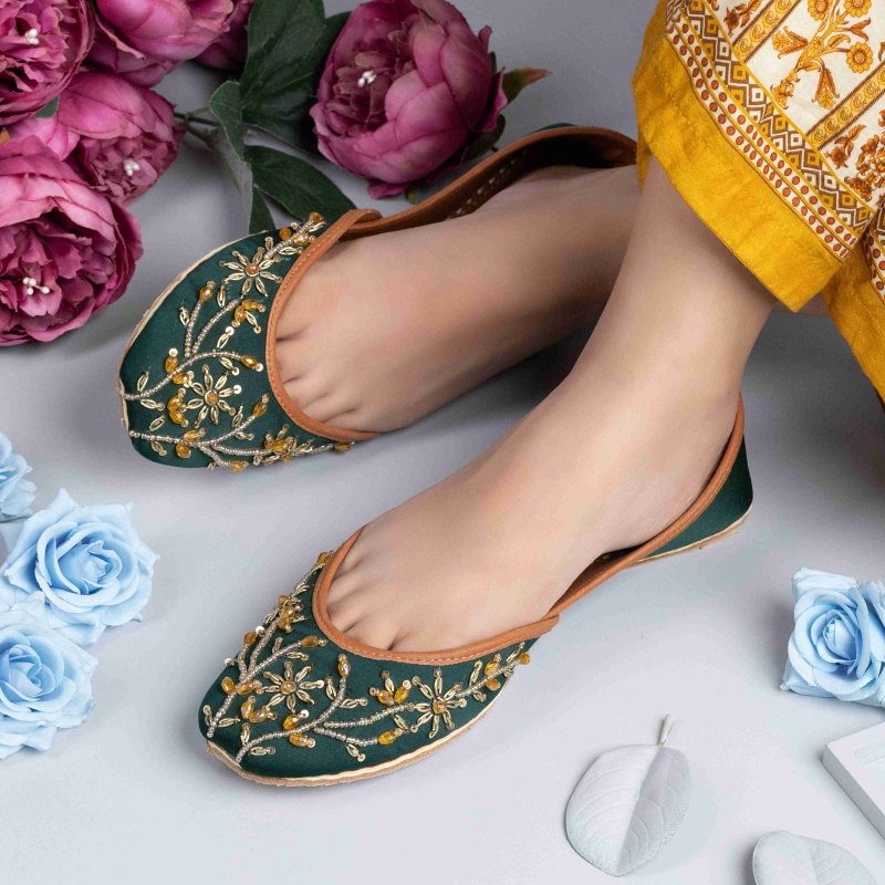 zun-274-Green is a quintessential exemplary of pleasant, luxurious and traditional artistry made on Green color base with beautiful handmade work. These are the adorable heritages of Pakistan that are hand-sewed by determined cordwainers of rural areas to exhibit the utmost beauty of prepossessing feet.
