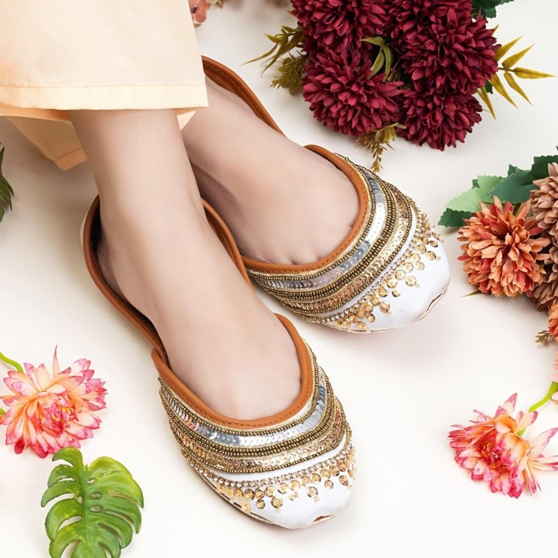 Zun-280-White is a quintessential exemplary of pleasant, luxurious and traditional artistry made on White color base with beautiful handmade work. These are the adorable heritages of Pakistan that are hand-sewed by determined cordwainers of rural areas to exhibit the utmost beauty of prepossessing feet.