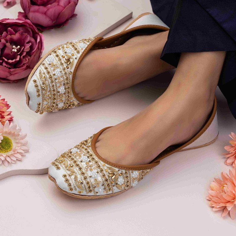 Zun-281-White is a quintessential exemplary of pleasant, luxurious and traditional artistry made on White color base with beautiful handmade work. These are the adorable heritages of Pakistan that are hand-sewed by determined cordwainers of rural areas to exhibit the utmost beauty of prepossessing feet.