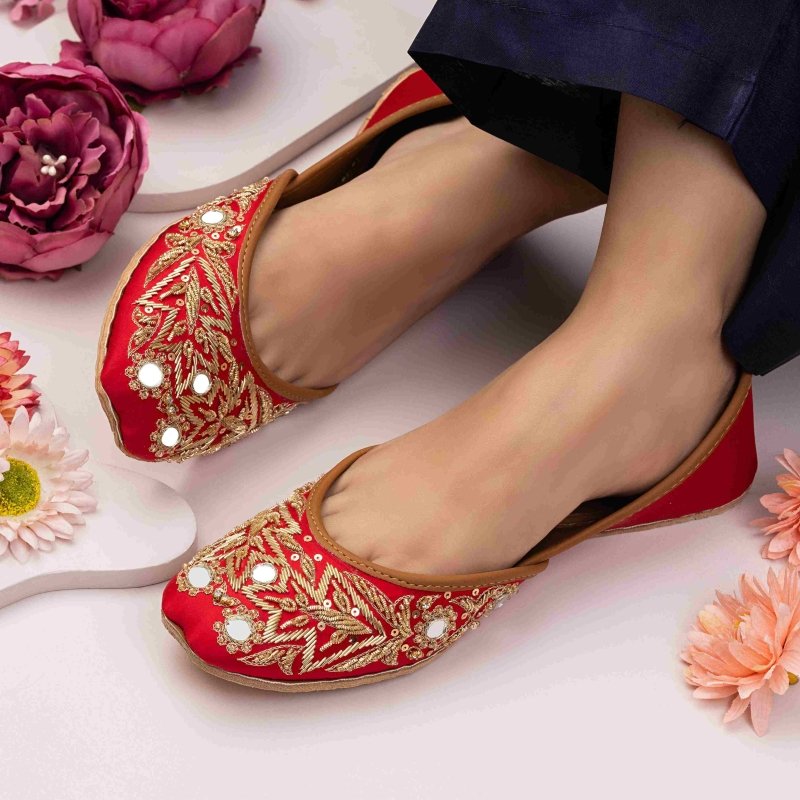 Zun-282-Red is a quintessential exemplary of pleasant, luxurious and traditional artistry made on Red color base with beautiful handmade work. These are the adorable heritages of Pakistan that are hand-sewed by determined cordwainers of rural areas to exhibit the utmost beauty of prepossessing feet.