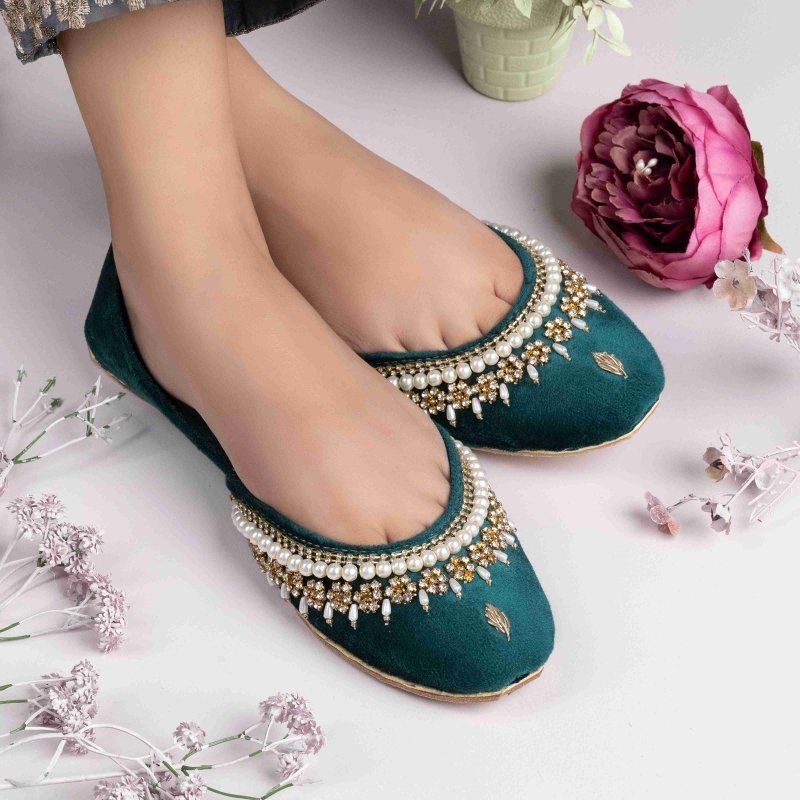 Zun-46 is a quintessential exemplary of pleasant, luxurious and traditional artistry made on Dark Green velvet. These are the adorable heritages of Pakistan that are hand-sewed by determined cordwainers of rural areas to exhibit the utmost beauty of prepossessing feet.