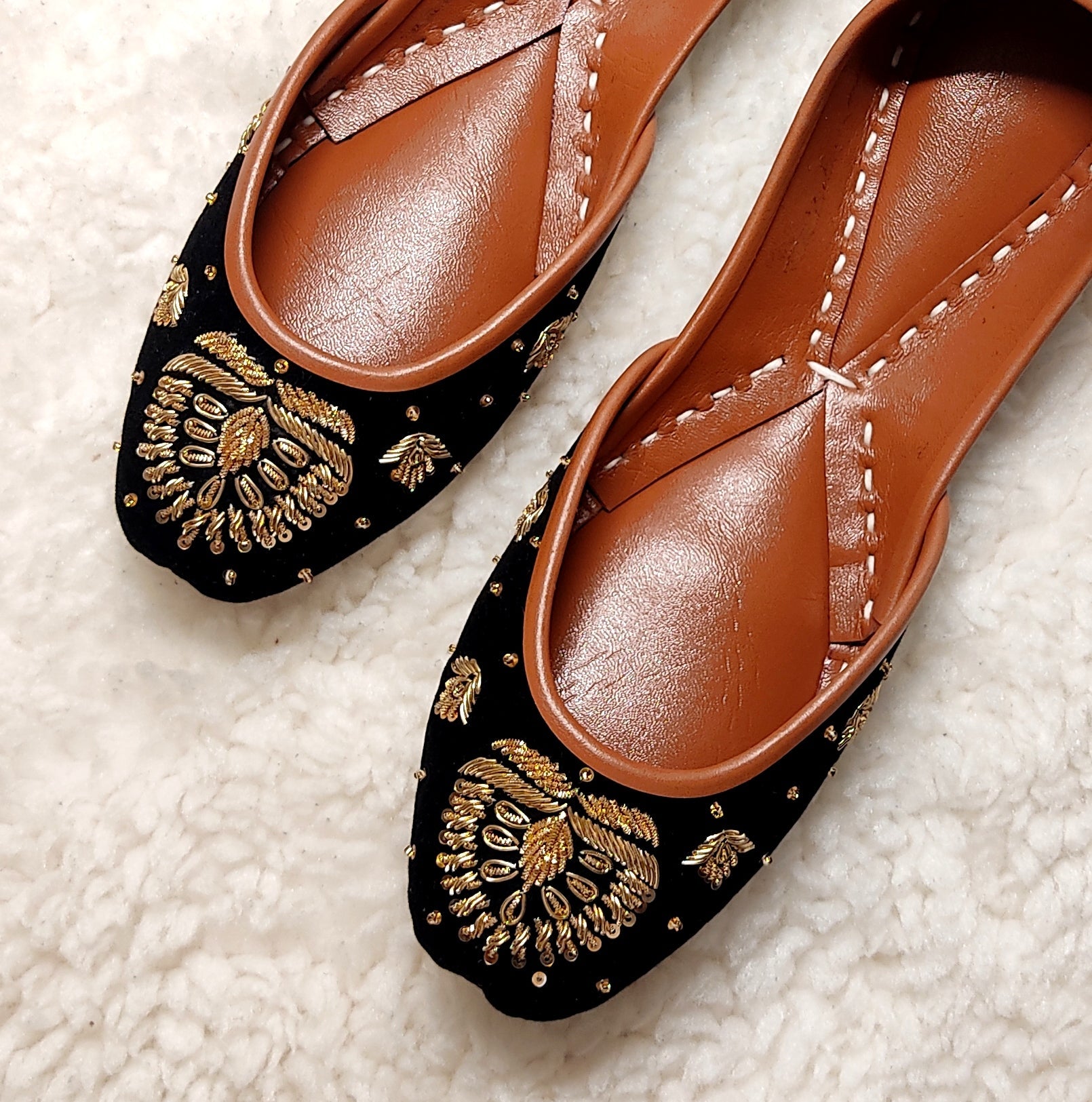 Zun-84 is a quintessential exemplary of pleasant, luxurious and traditional artistry made on black velevet with golden work. These are the adorable heritages of Pakistan that are hand-sewed by determined cordwainers of rural areas to exhibit the utmost beauty of prepossessing feet.