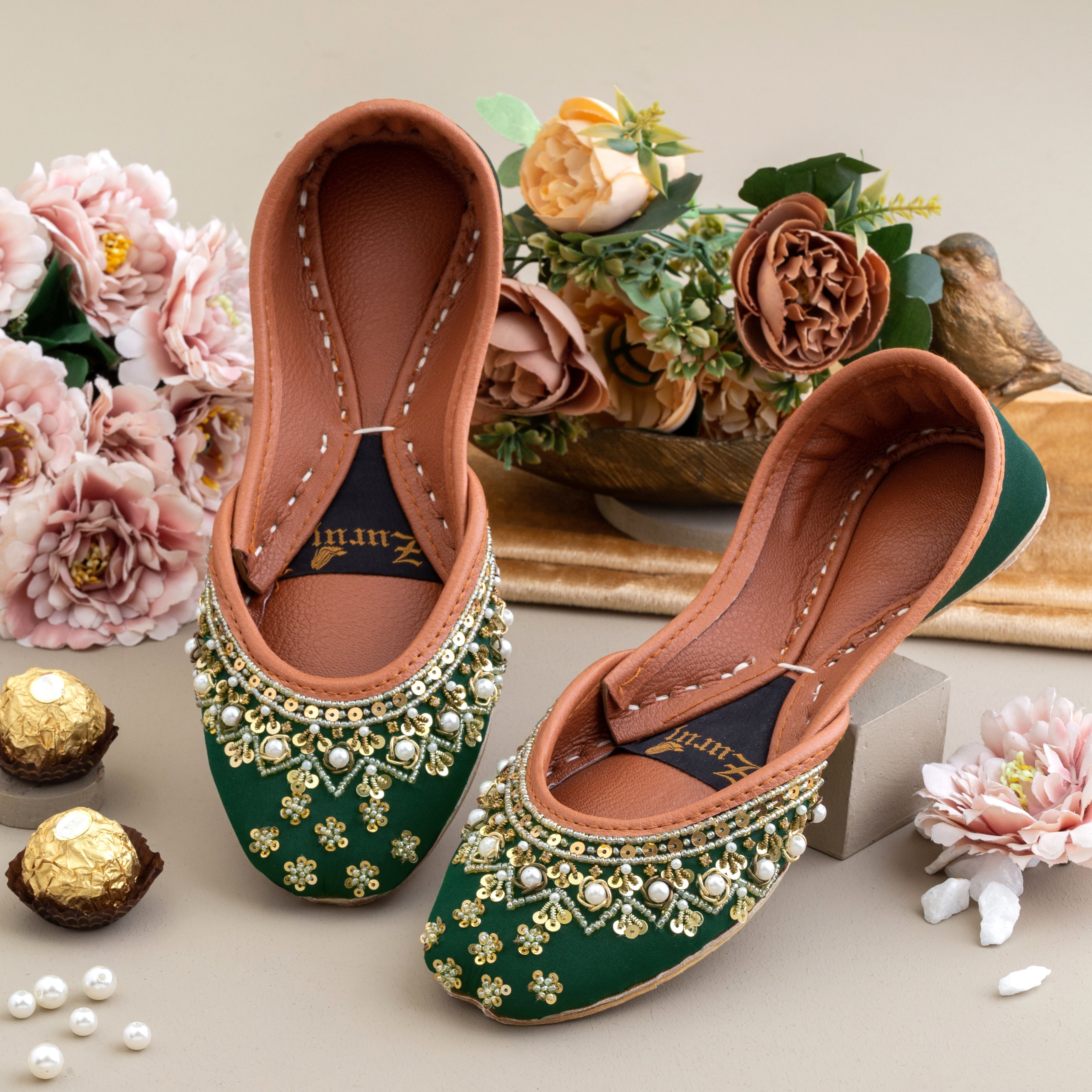 Zun-92-Green is a quintessential exemplary of pleasant, luxurious and traditional artistry made on Green base with beautiful embroidery work. These are the adorable heritages of Pakistan that are hand-sewed by determined cordwainers of rural areas to exhibit the utmost beauty of prepossessing feet.
