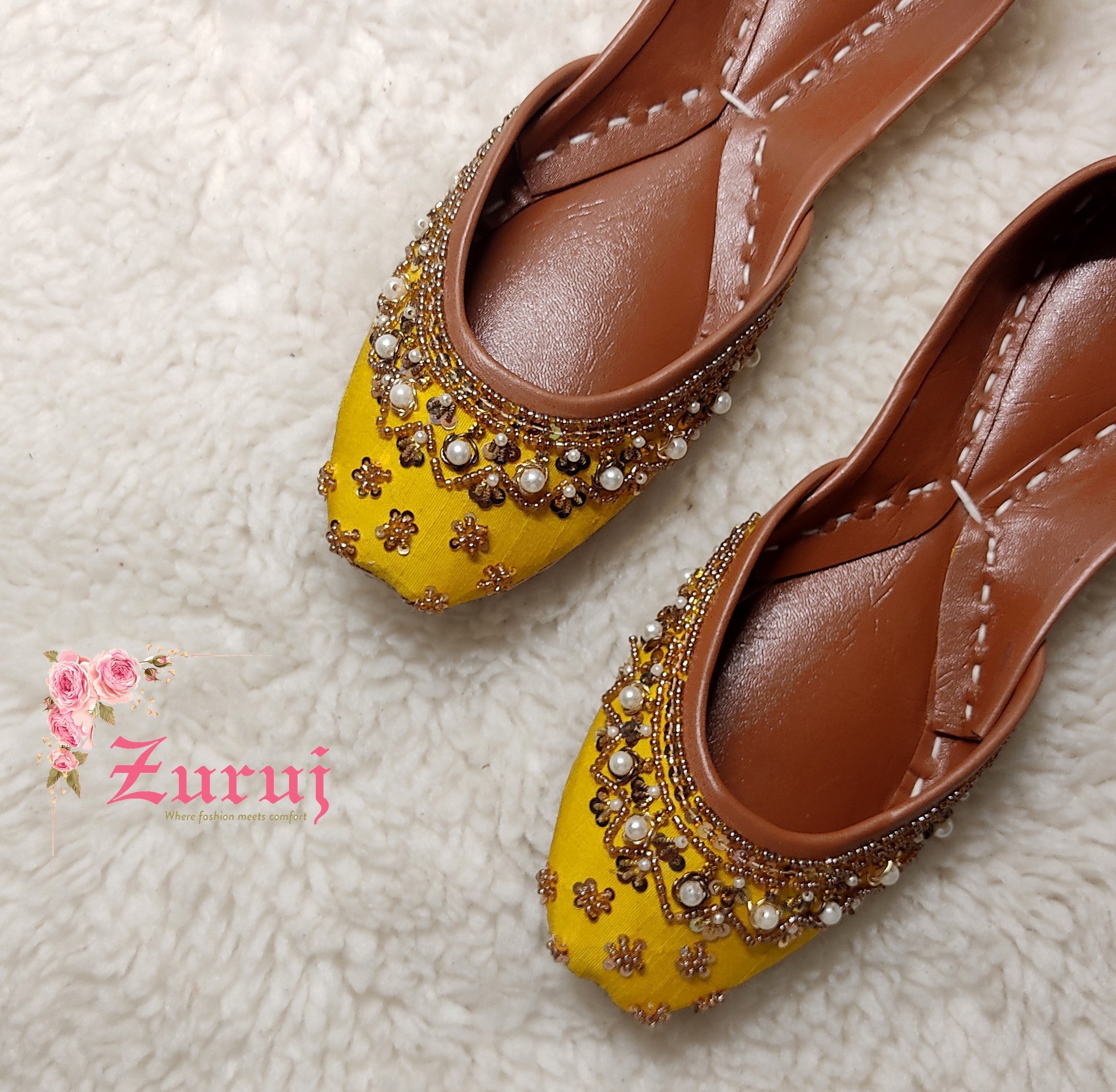 Zun-92-Y is a quintessential exemplary of pleasant, luxurious and traditional artistry made on Yellow base with beautiful hand made work. These are the adorable heritages of Pakistan that are hand-sewed by determined cordwainers of rural areas to exhibit the utmost beauty of prepossessing feet.