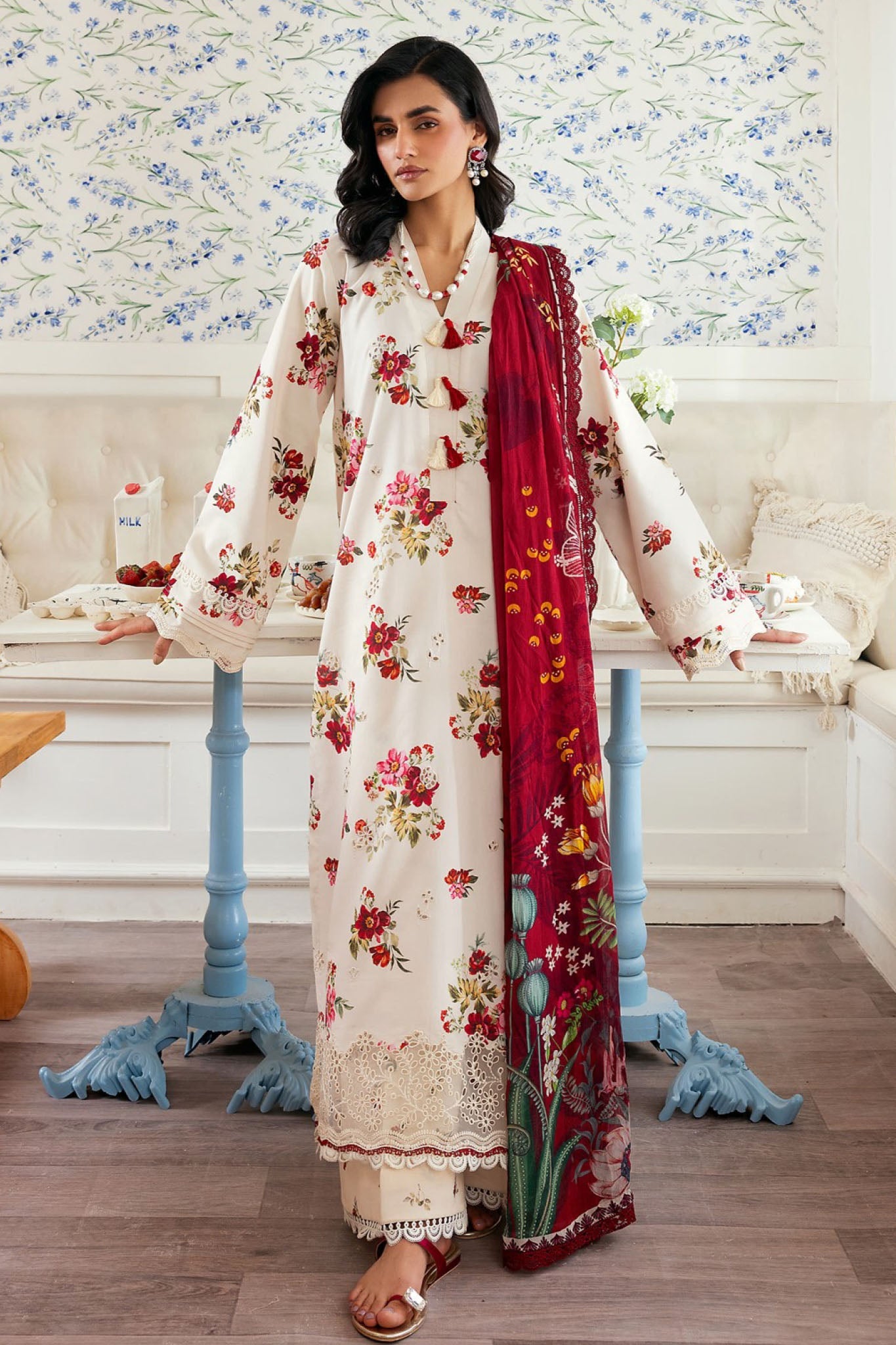 Digital Printed Embroidered Front 1.20 Digital Printed Back & Sleeves 1.85 Embroidered Border For Sleeves 1 Yard Embroidered Border For...