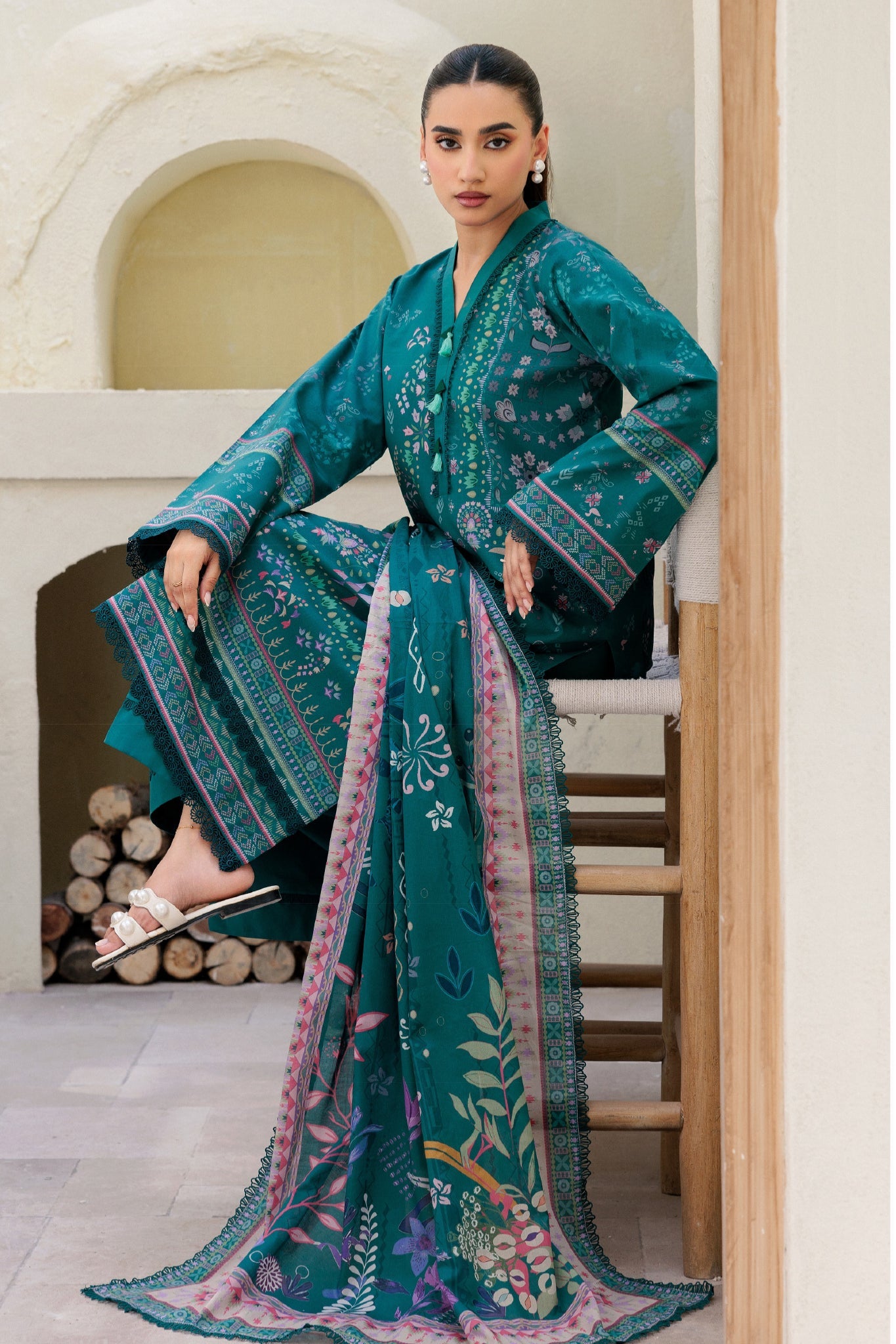Dupatta: Digital Printed Supima Lawn 2.5 Mtr