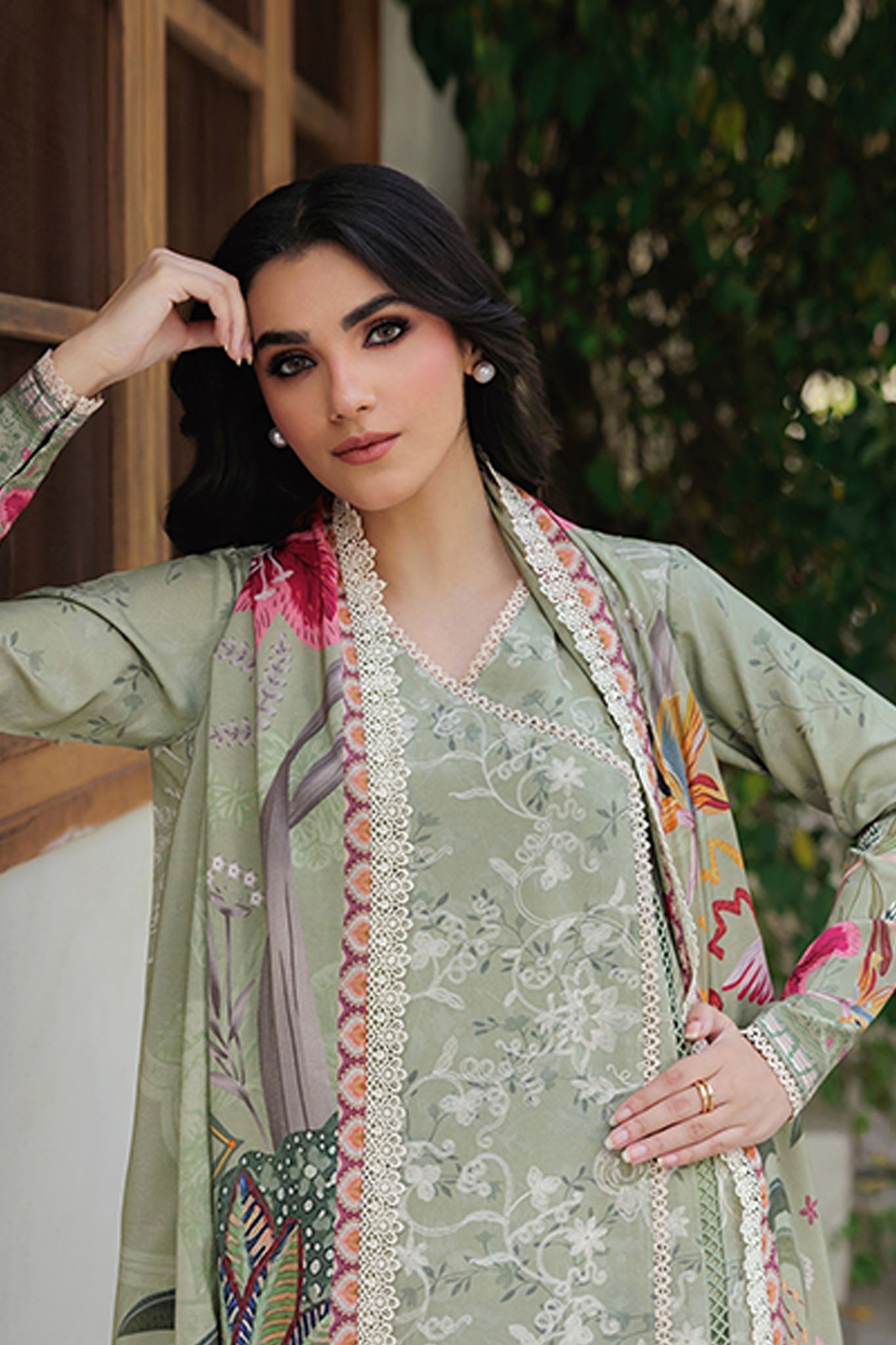 Digital Printed Embroidered Front 1.20 Digital Printed Back & Sleeves 1.85 Digital Printed Wool Shawl 2.5 Mtr Dyed Trouser 2.5...